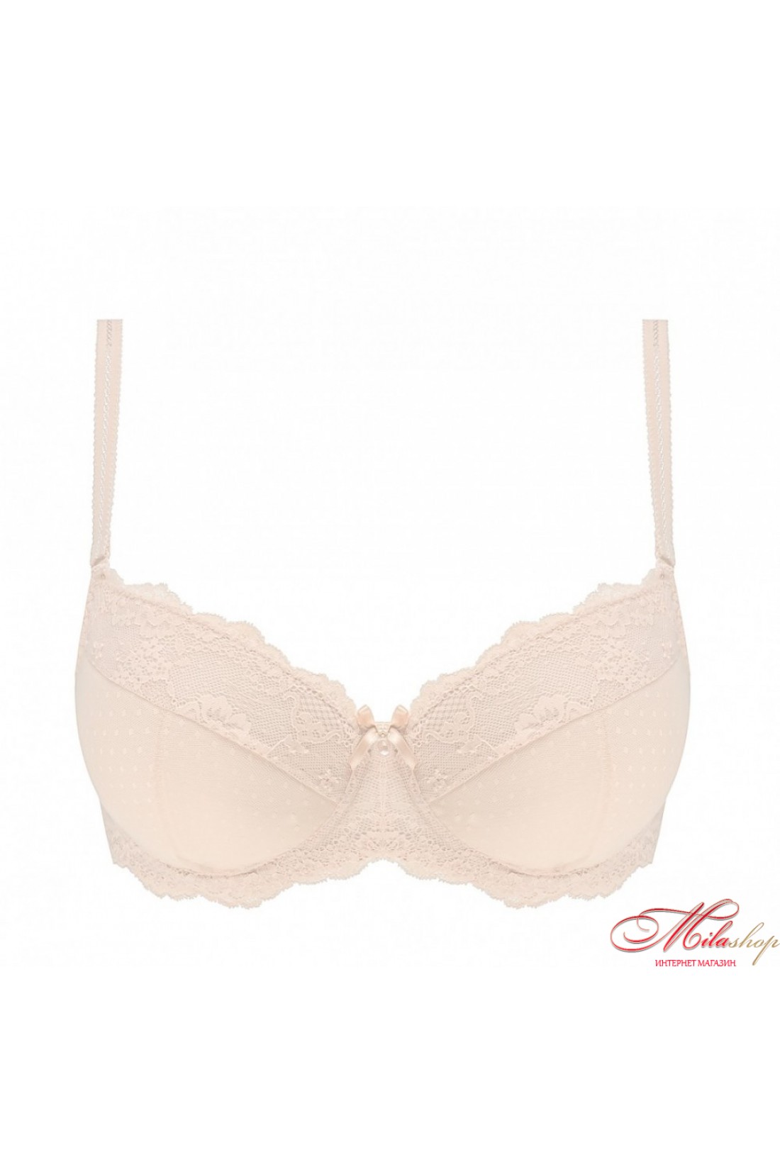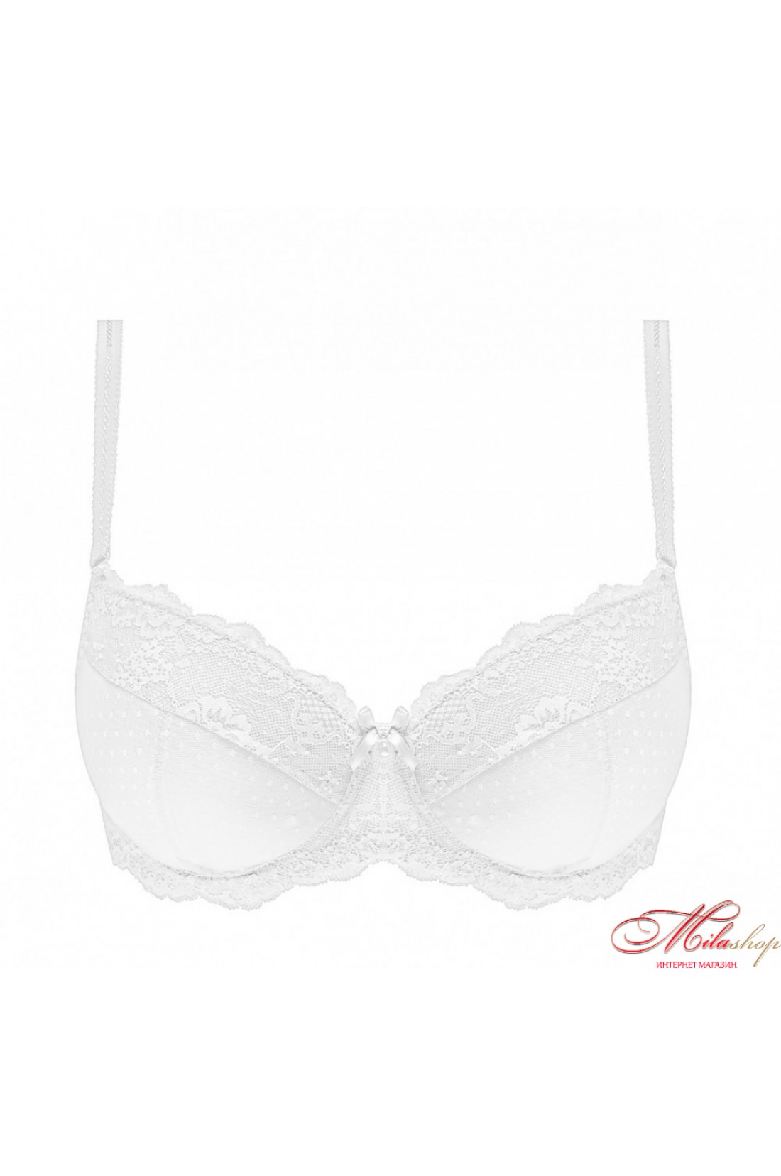 Красивый элегантный бюстгальтер со съемным пуш-ап придает эффект легкости. Чашки украшены красивым кружевом. Бретели регулируются по длине.