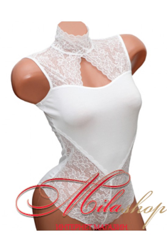 Чувственное боди в белом цвете. Без рукавов. Выполнено из нежной вискозной ткани. Верхняя часть из эластичного кружевного полотна. Оригинальности добавляют необычные вырезы в передней и задней части наряда.