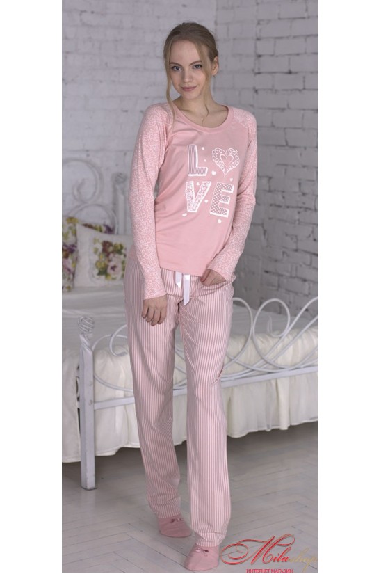 Пижама женская Roksana 505 изготовлена из натурального хлопкового трикотажного полотна. Пижама имеет прилегающий силует.