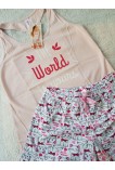 Пижама из хлопка Roksana 579 состоит из майки со спинкой "борцовкой" и шортиков с оборкой внизу.