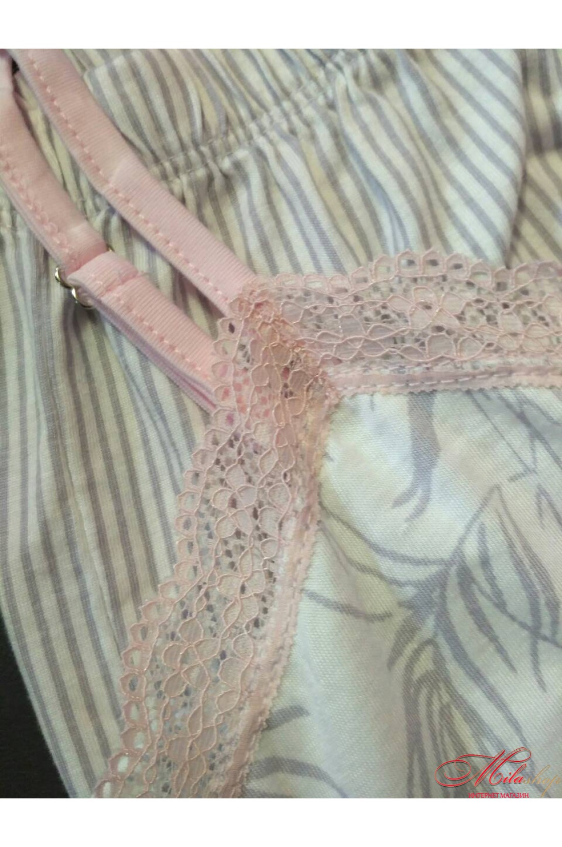 Нежная пижамка из приятного мягкого полотна (состав 50% хлопок, 50% модал) состоит из майки на тонких бретелях с регулировкой и шортиков.