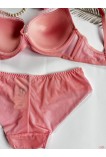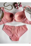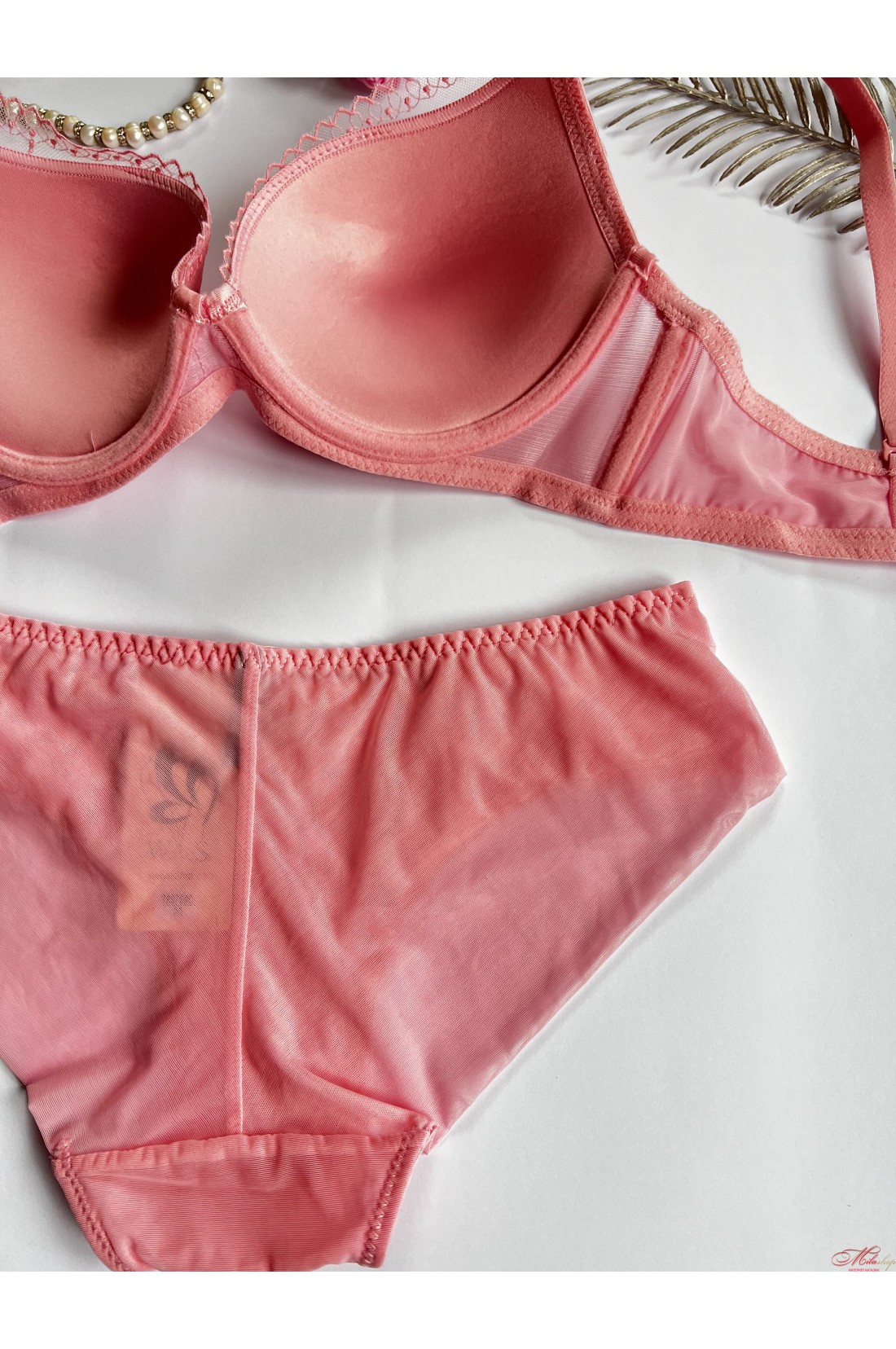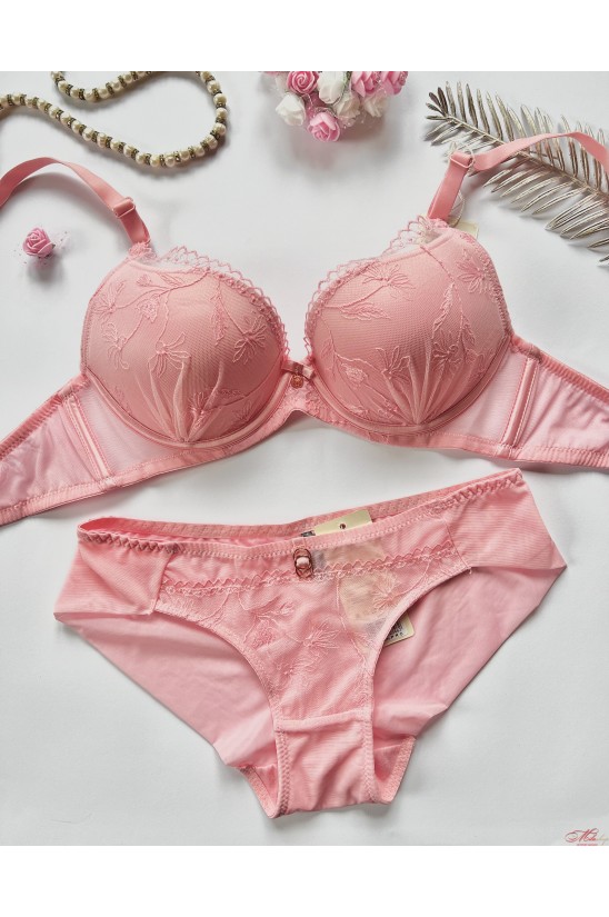 Прекрасный комплект, бюстгальтер и трусики выполнены из кружева и сетчатого полотна, чашки с поролоном на косточках, трусики слипы. Хорошо собирает и поддерживает грудь.