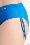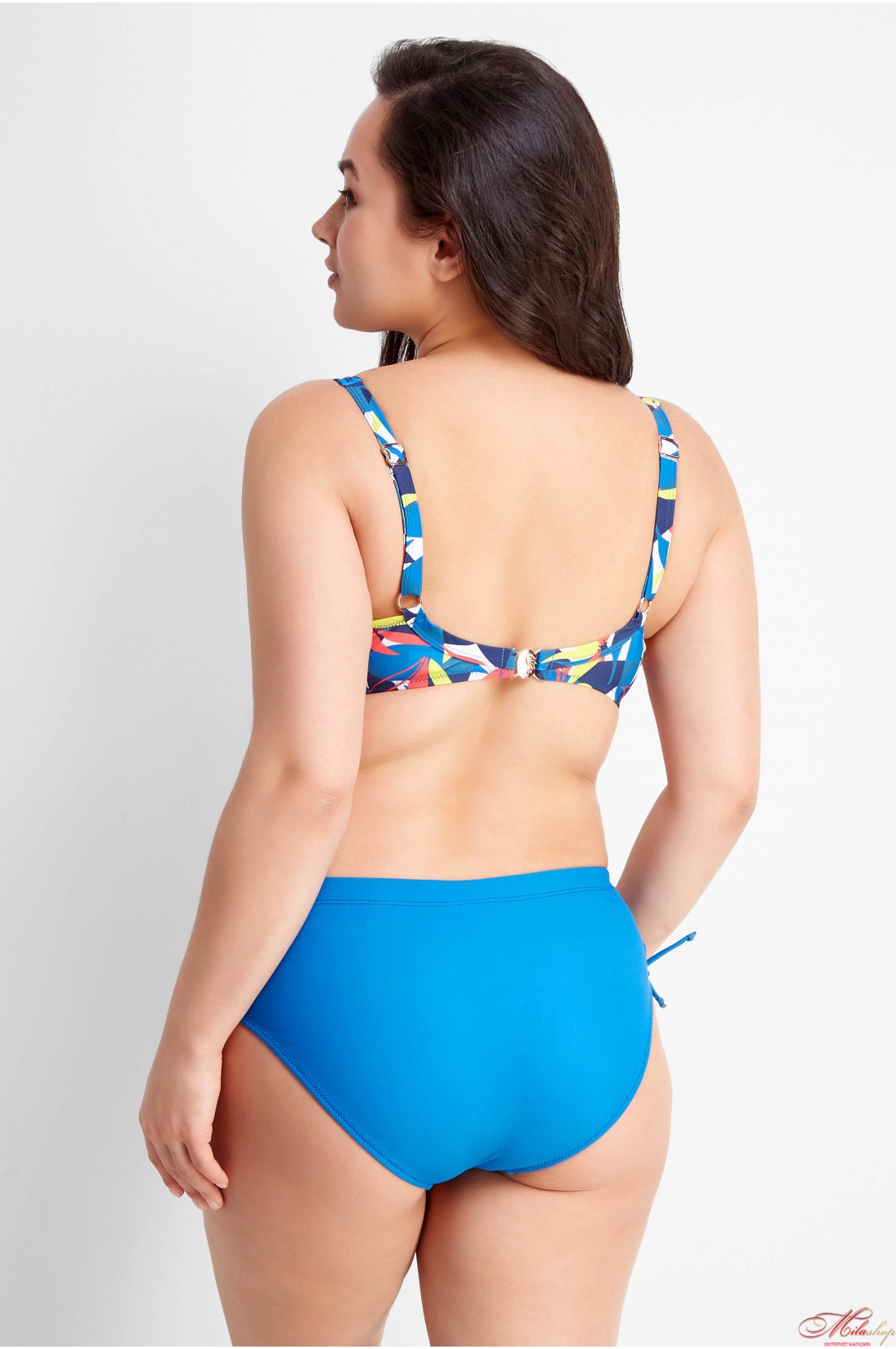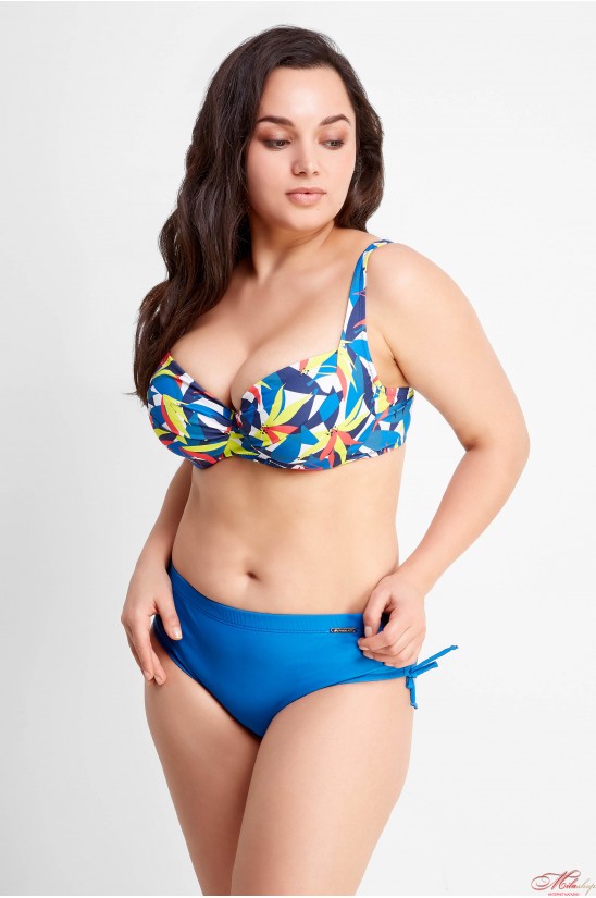 Купальник для женщин с пышной грудью. Мягкая чашка внутри подкладка из утягивающей сетки, внизу вставка из неэластичного материала для дополнительной поддержки. Цельнокроеные бретели округляют и собирают грудь. Плавки с завышенной линией талии со шнуровкой, можно регулировать ширину по бокам.