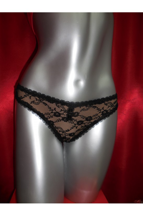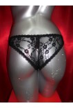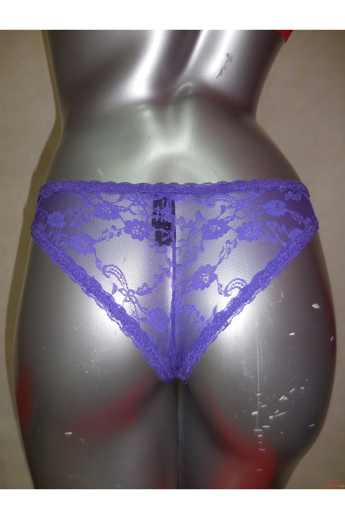 Трусики с низкой линией талии. Передняя часть выполнена из хлопка с накладным кружевом, задняя часть из эластичного кружевного полотна. спереди декорированы пуговицами.