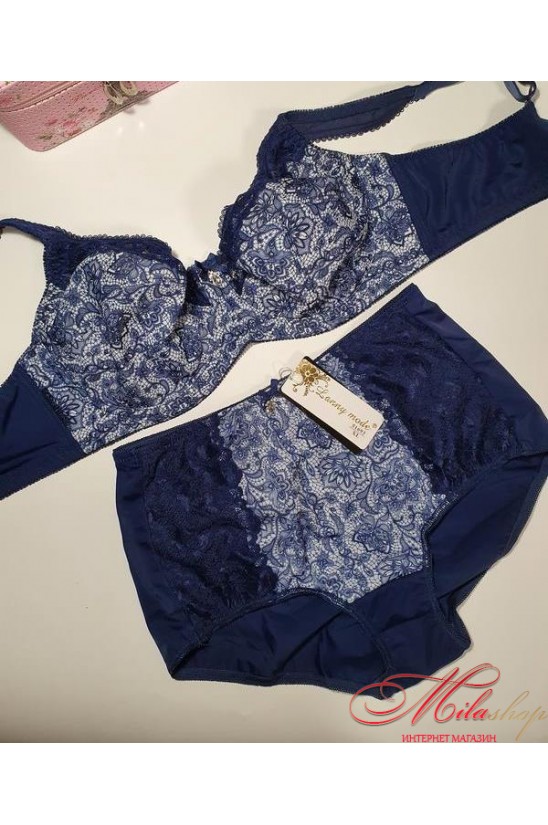 Прекрасный комплект для большой груди Lanny Mode 11693+51693 синий с узором