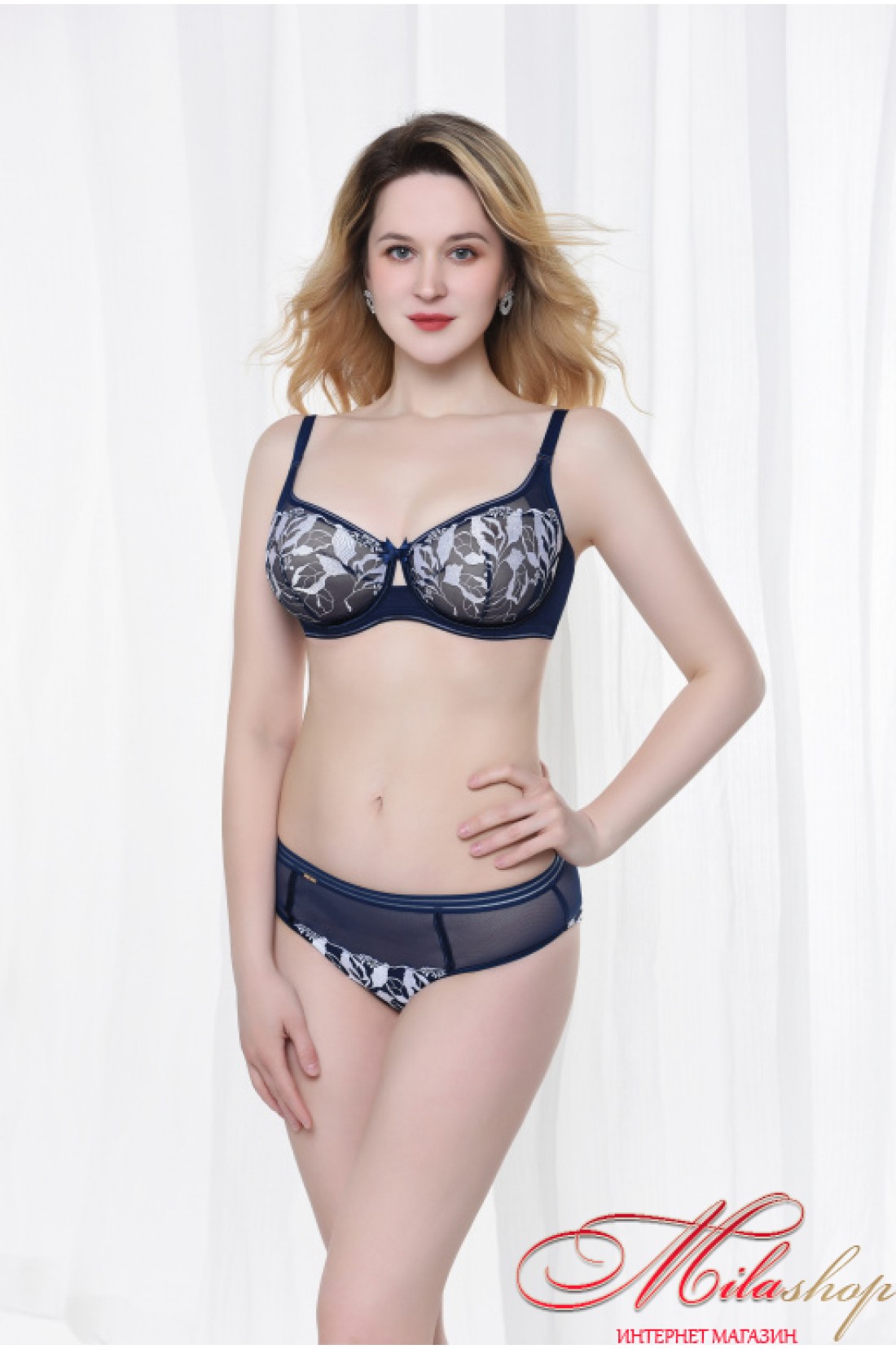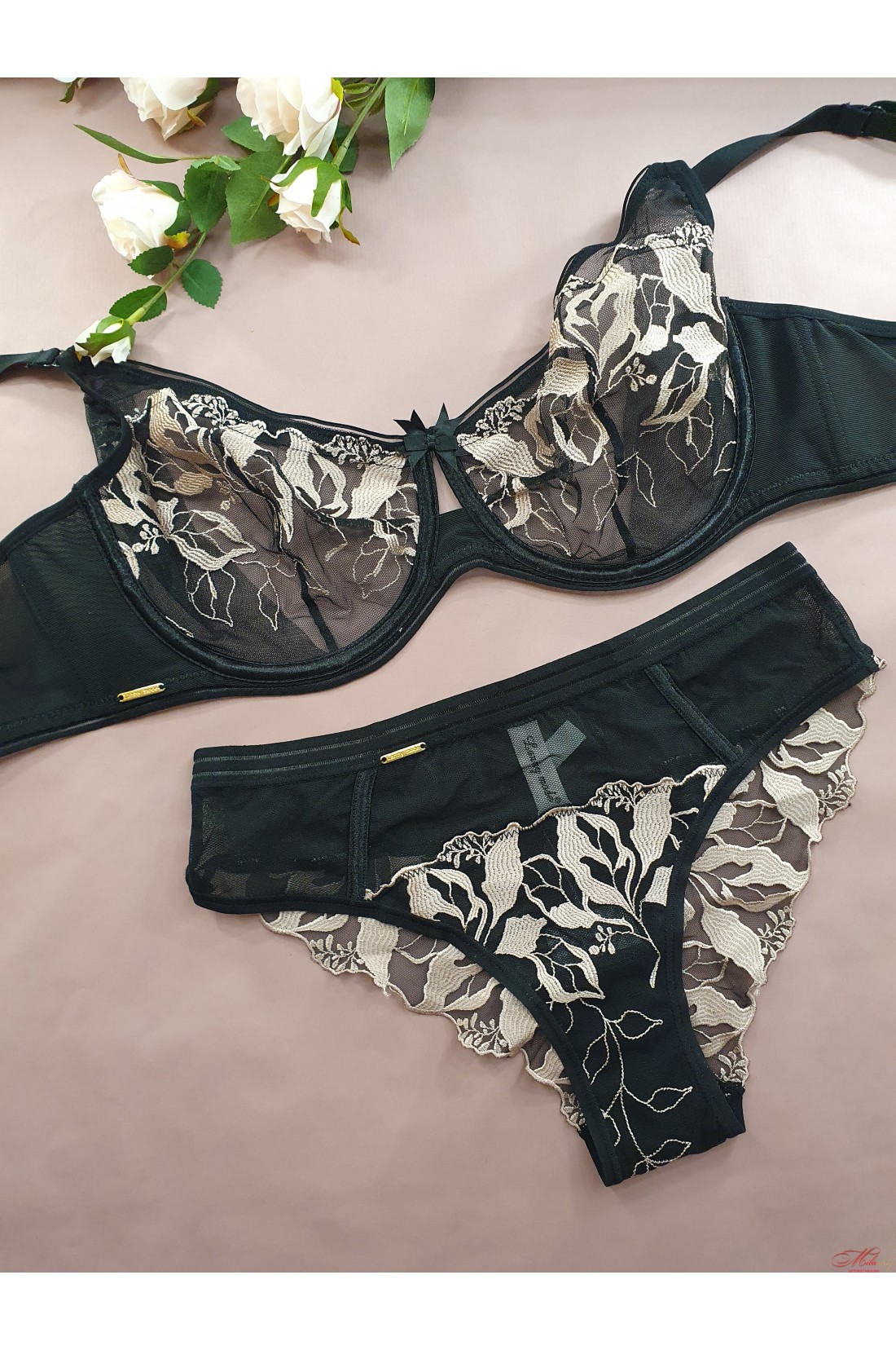 Красивый комплект. Бюстгальтер с мягкими чашками на косточках, трусики бразилиана. Изумительное сочетание сетчатого полотна и вышивки.