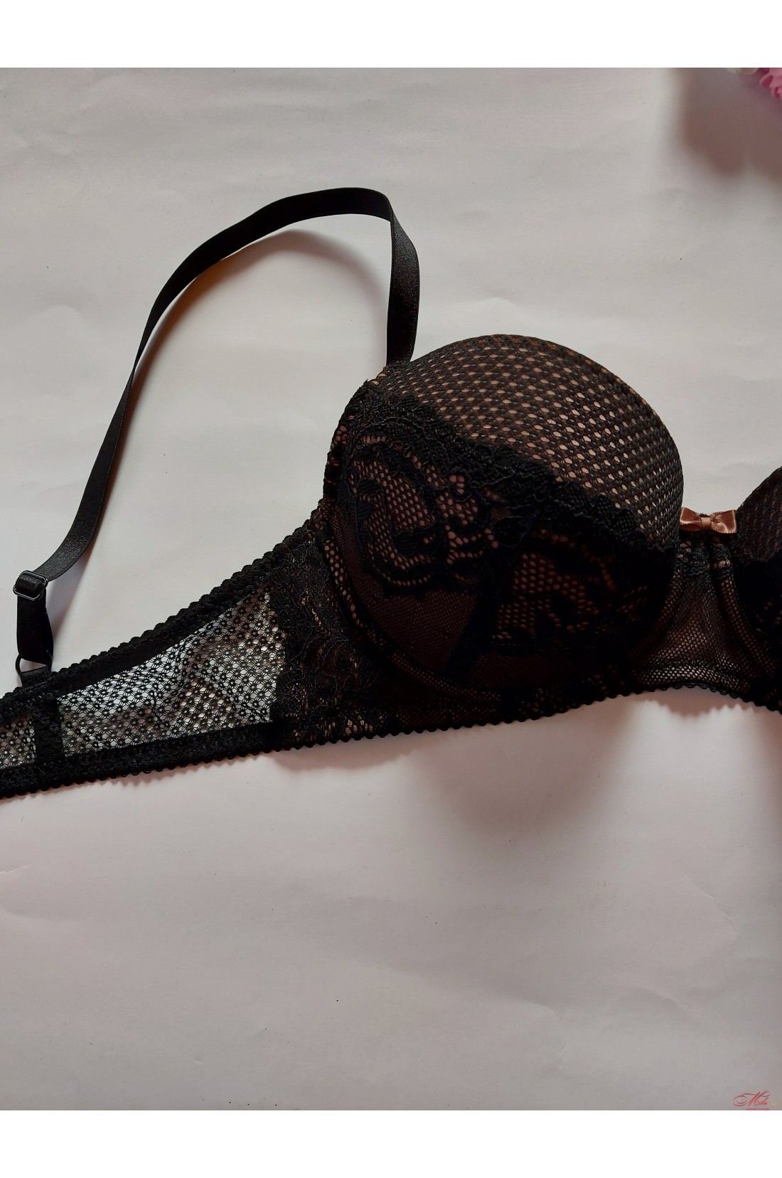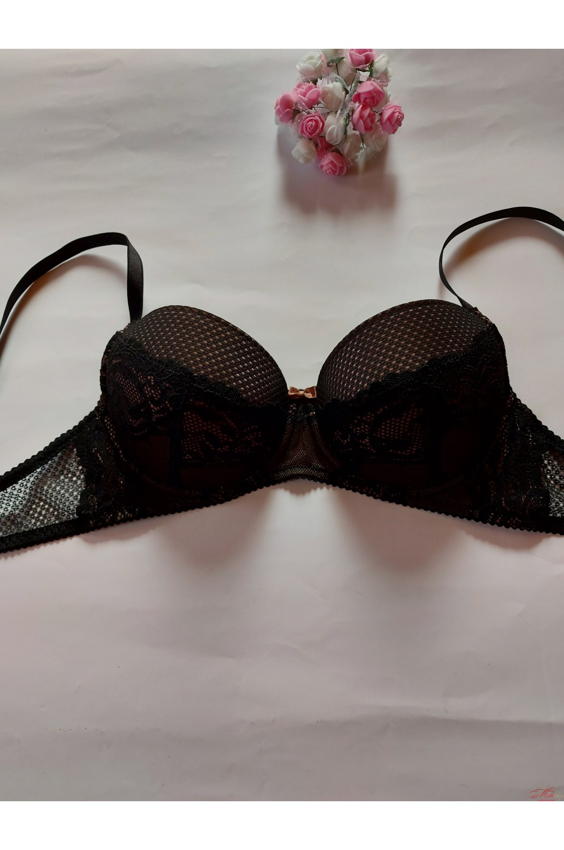 Безумно красивый бюстгальтер с чашками на косточках, на тонком поролоне с хлопковым подкладом, без пуш-ап. Чашки украшены красивым кружевом. Бретели не отстегиваются, регулируются по длине.