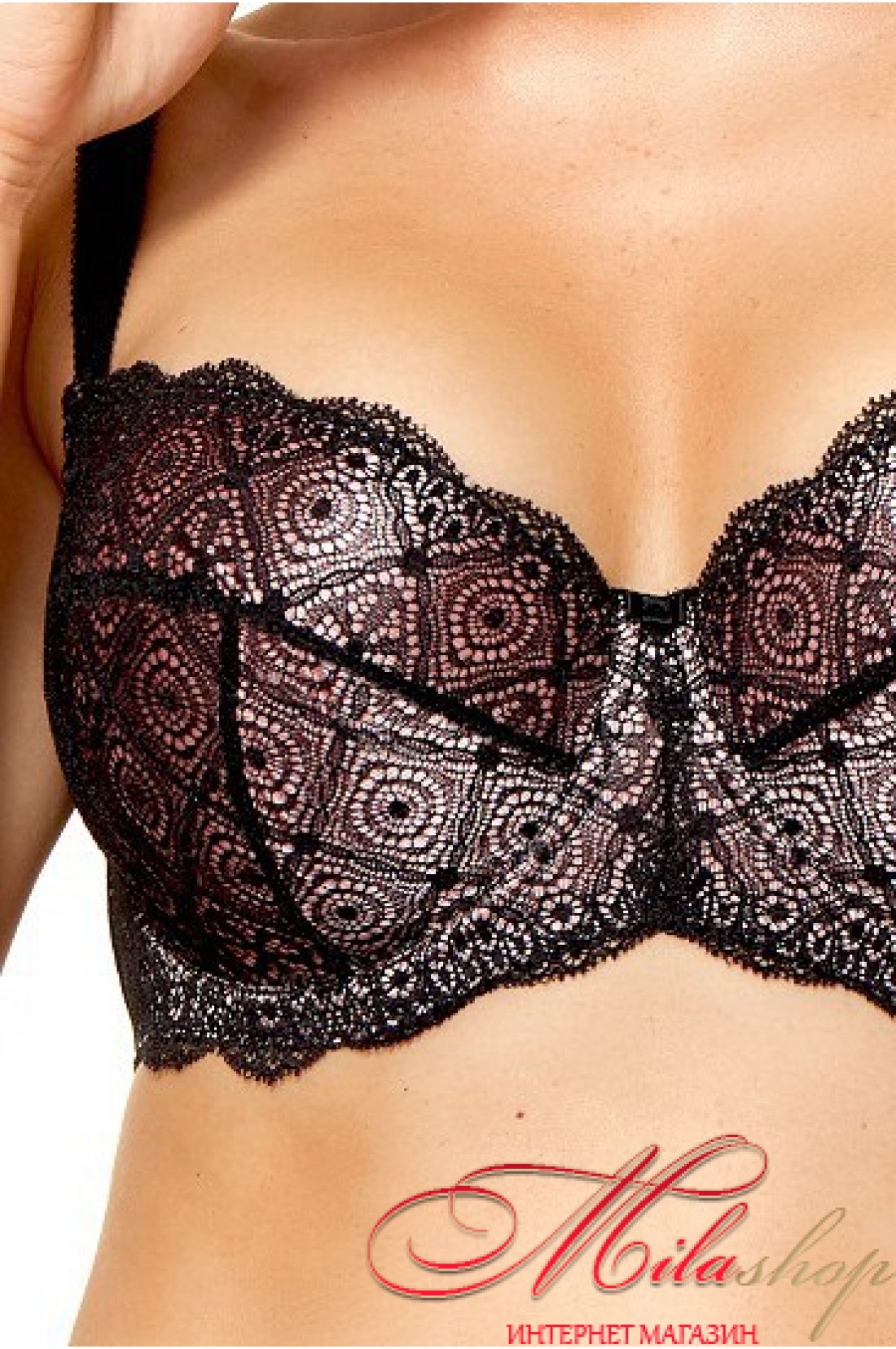 Мягкий чашка бюстгальтера с косточками, выполнены из роскошного сетчатого полотна и кружева. Чашки великолепно формируют и поддерживают грудь. Бретели регулируются по длине, не отстегиваются.