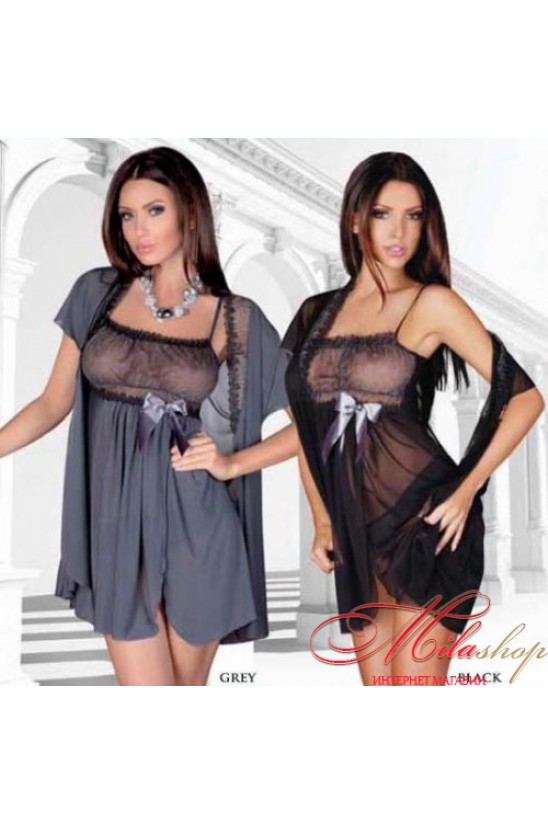 Эротическая сорочка из нежного материала, верхняя часть выполнена из полупрозрачной сетки, которая деликатно приоткрывает бюст. Тоненькие регулируемые бретели. Под грудью сорочка присобрана и украшена черной кружевной лентой и атласным бантиком.