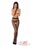Колготки выполнены из эластичной сетки, с узорами. Плотно прилегают к ножкам, делая их более стройными, зрительно удлинняя их. Вырез в интимной зоне.