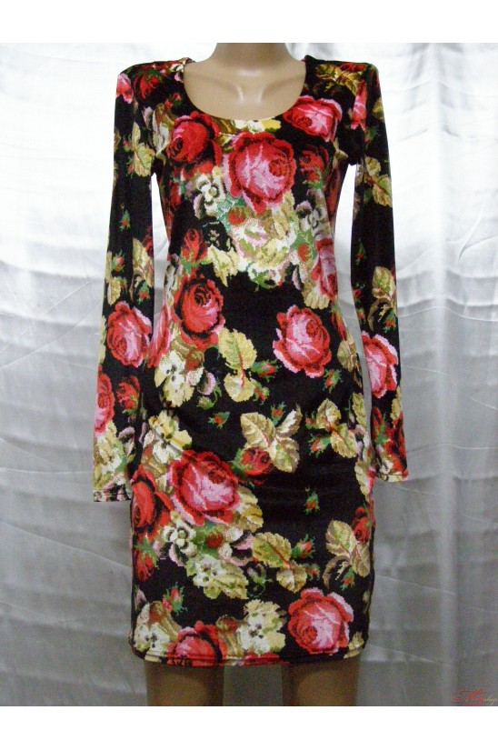 Шикарное велюровое платье модной расцветки "платок". Длинный рукав.