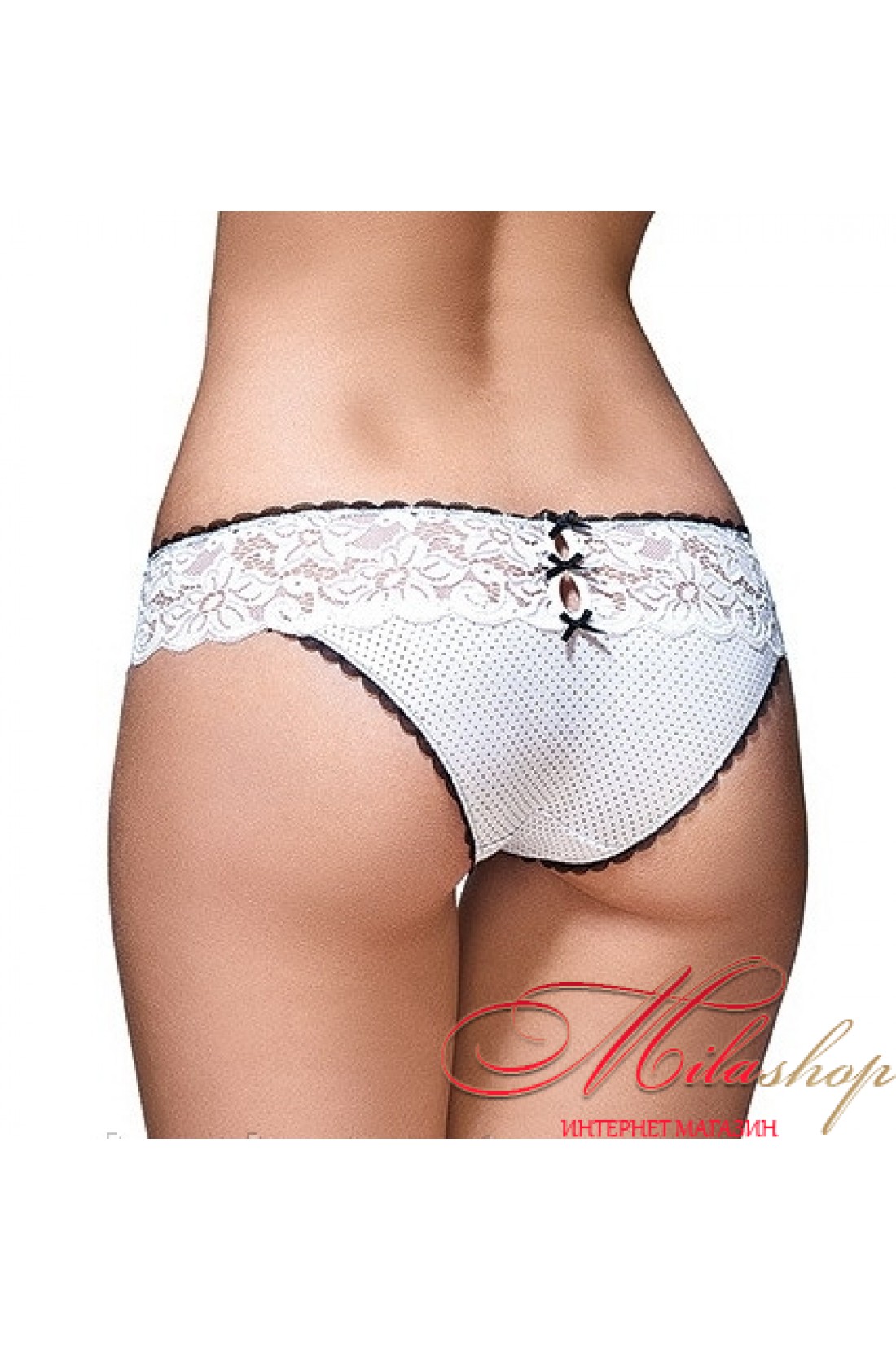 Красота и комфорт сочетаются в новой модели от La Vivas. Трусики выполнены из хлопка, в мелкий горошек, с кружевным поясом. Задняя часть трусиков декорирована бантиками.