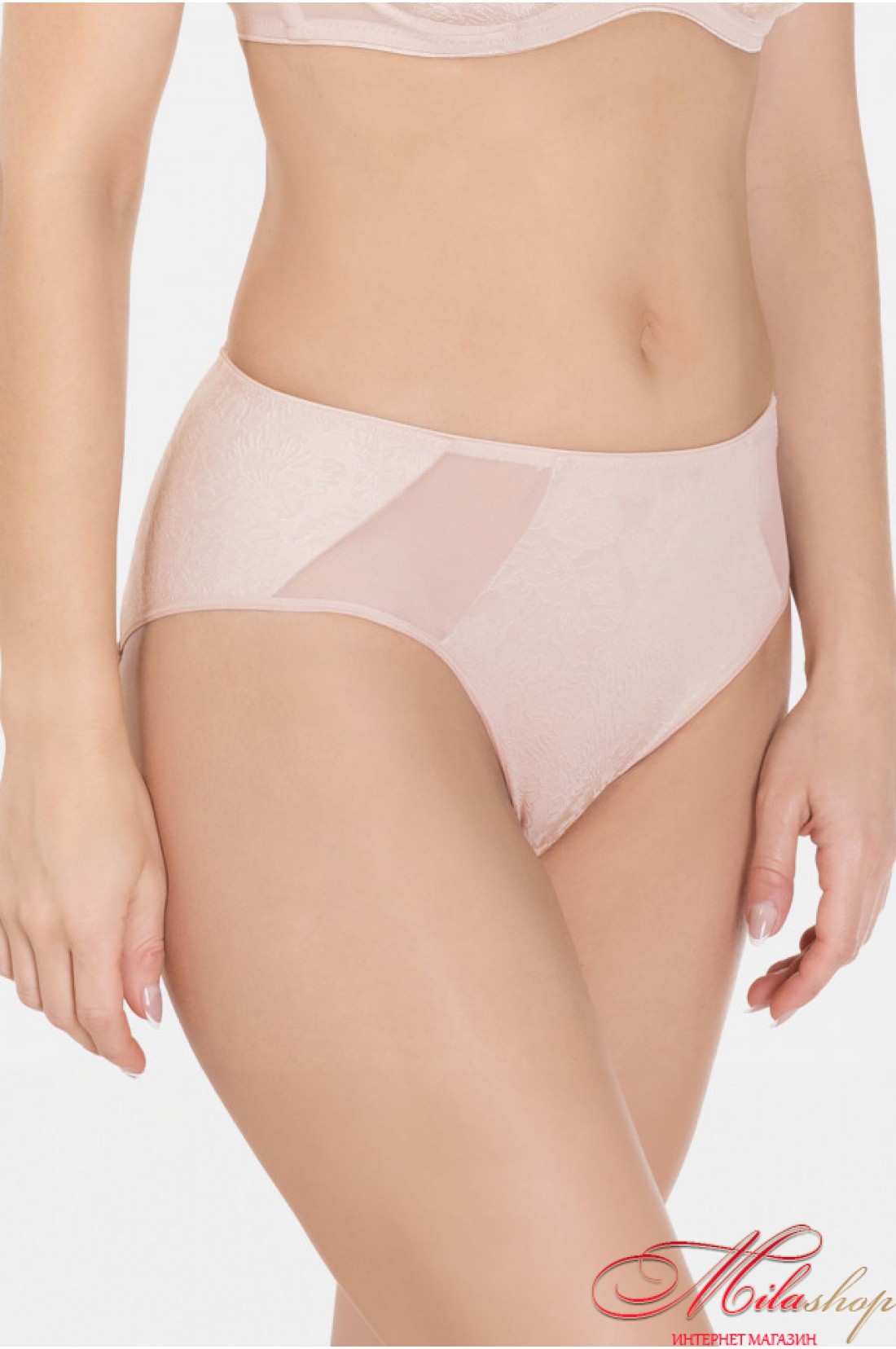Трусики классического кроя с высокой линией талиивыполнены из микрофибры, украшены вставками из микросеточки. Внутренняя деталь ластовицы выполнена из хлопка.