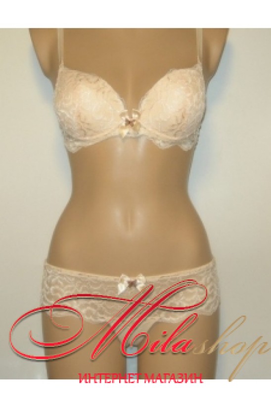 Соблазнительный комплект белья. Состоит из бюстгальтера с эффектом push-up и трусиков-слип. Съемные бретели, чашки на хлопковом подкладе