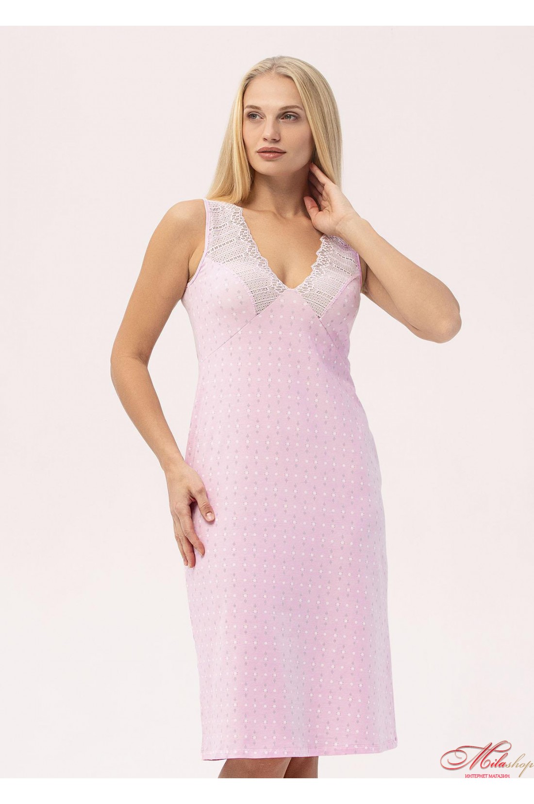 Сорочка из хлопка с кружевными вставками Roksana 1428 розовая