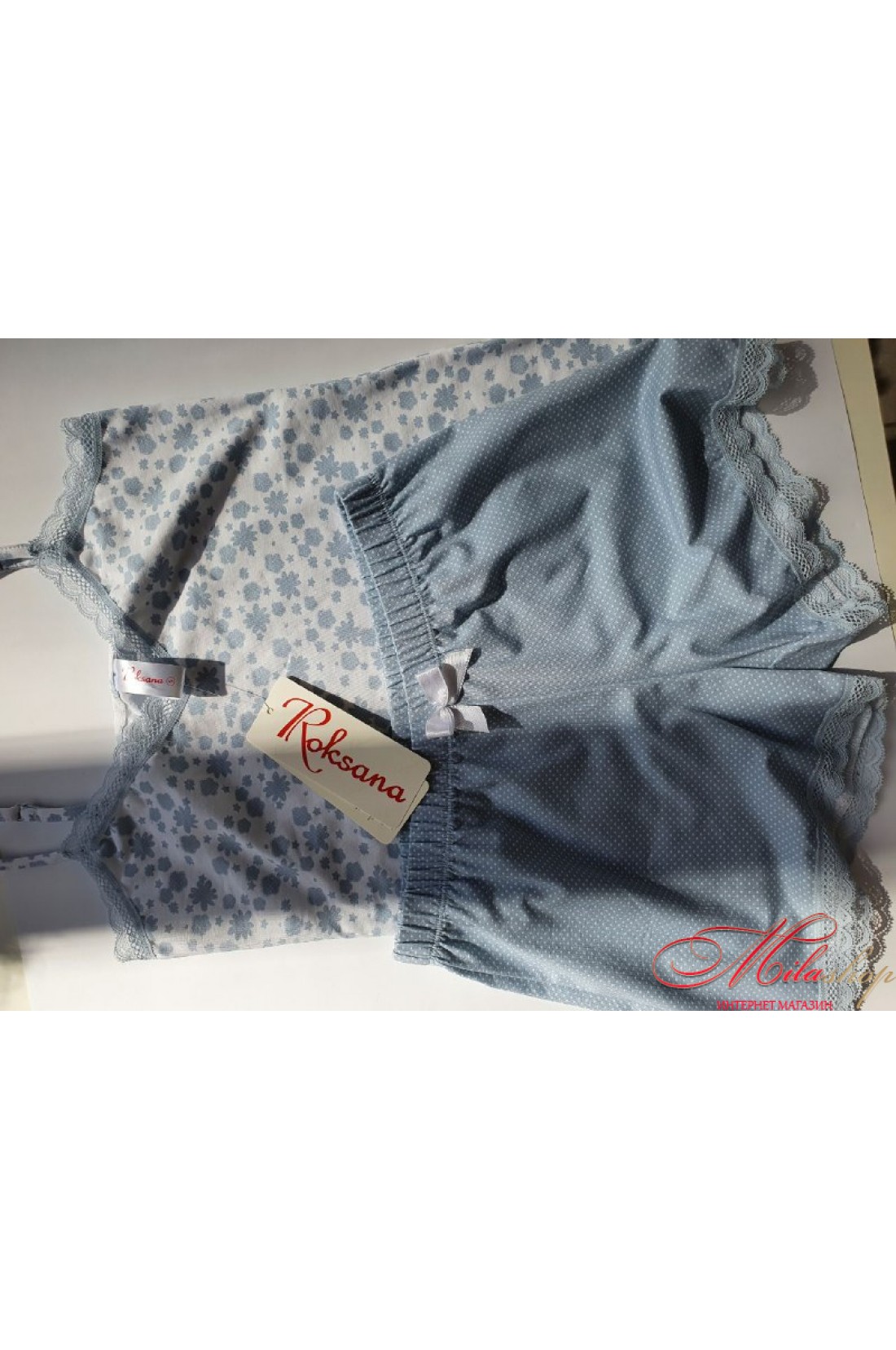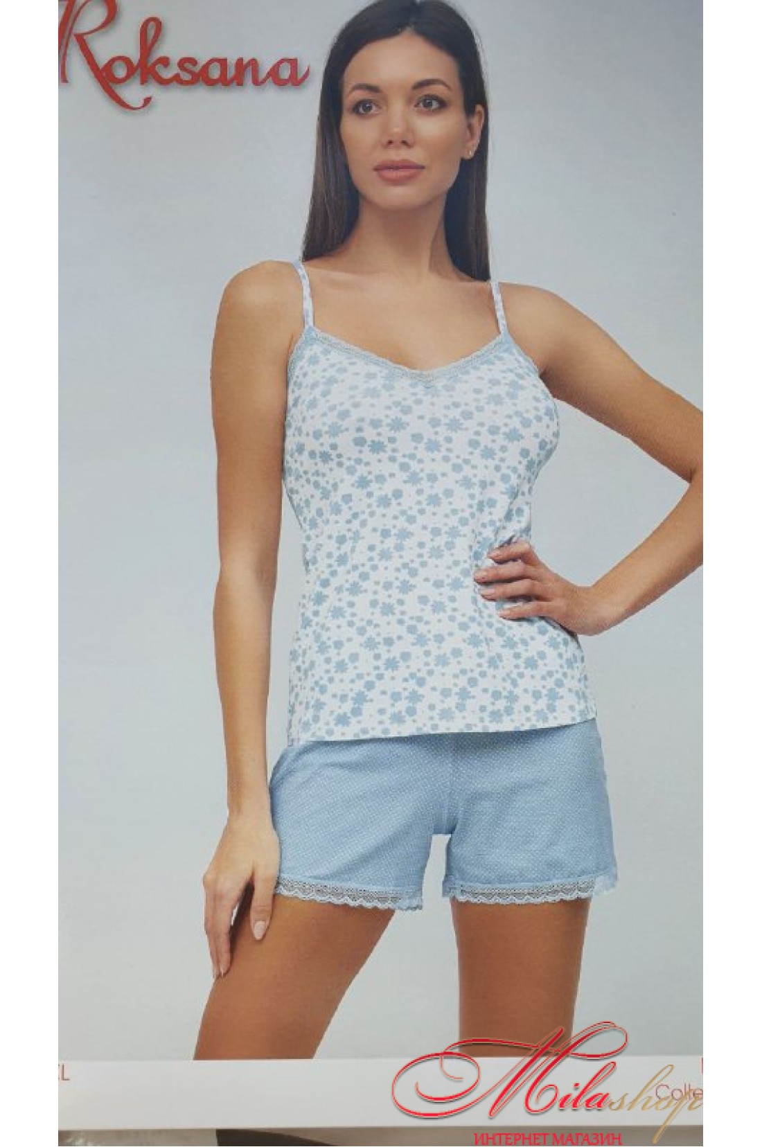 Комфортная пижама из хлопка. Маечка на тоненьких бретелях, шортики свободного кроя.