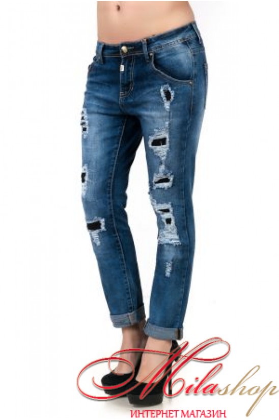 Рваные джинсы бойфренды. Отличная посадка. Котон.