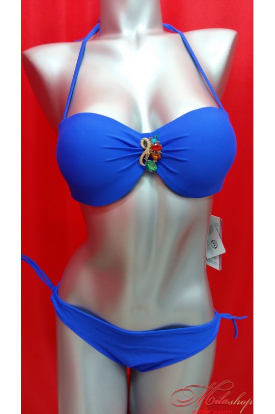 SameGame. Модель с бюстгальтером - балконет и брошью. Уплотнённая чашка с push-up. Купальник со съемными бретелями, сзади на завязках. Сверху можно регулировать по высоте, а можно отстегнуть бретельку. Плавки классические.