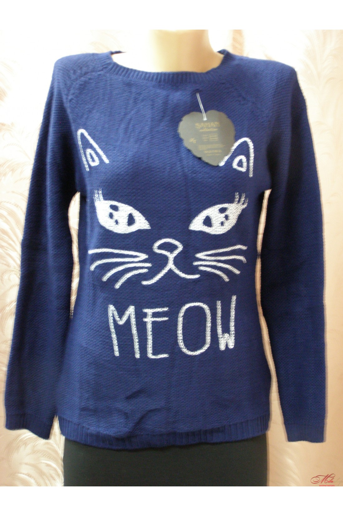 Теплый вязаный свитер. Спереди украшен рисунком "кот".Размер универсальный (хорошо садится от 44-48)