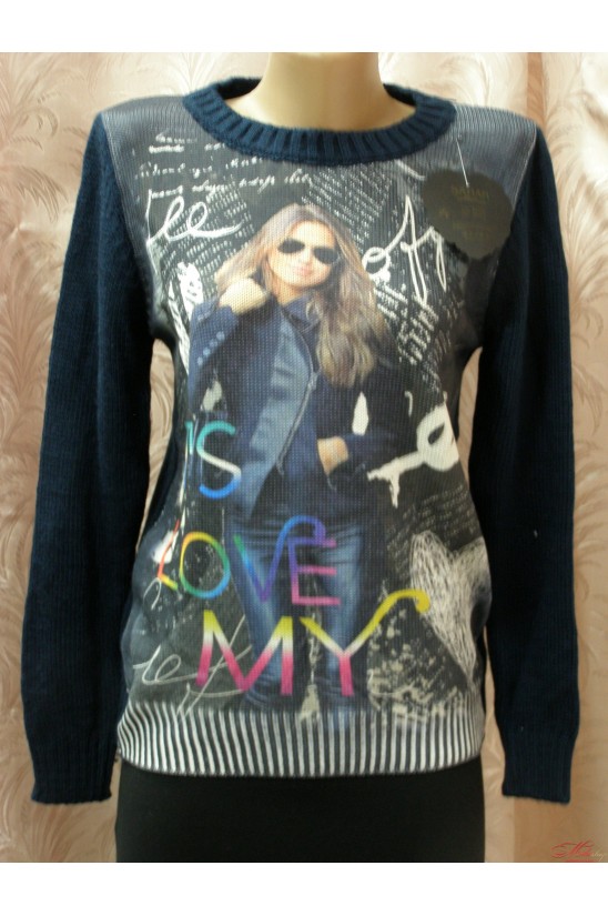 Стильный, молодежный свитер. Спереди украшен принтом. Размер универсальный (хорошо садится от 44-48)