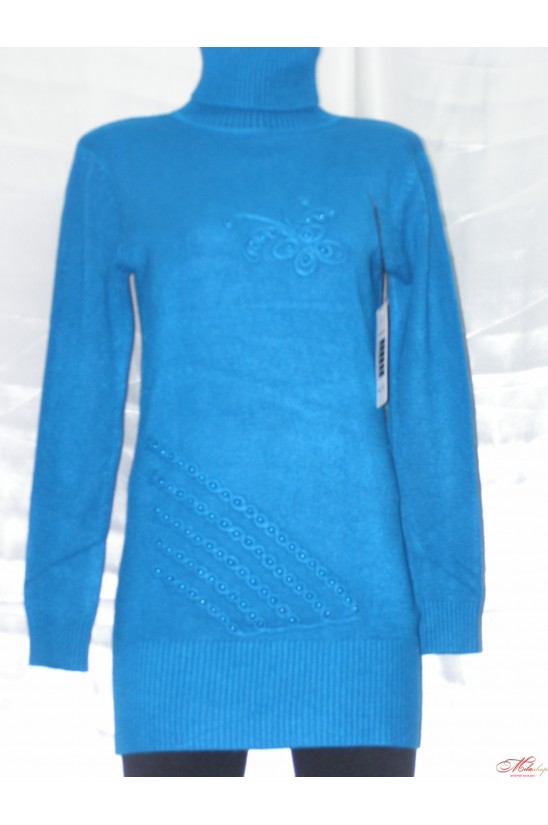 Теплая женская туника из кашемира. Длинный рукав. Украшена интересными узорами и жемчужинами в тон наряду. Сочетается с плотными колготами, лосинами и узкими джинсами.
