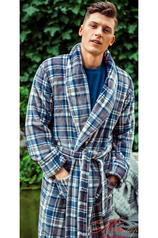 Теплый мужской халат в пол. Выполнен из мягчайшей махры. Под пояс без капюшона.