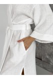 Халат-кимоно из фактурного муслина – чистота стиля и изящества. Этот халат – воплощение эстетики сдержанной роскоши. Фактурный муслин с нежной льняной ноткой придает изделию благородный вид. Изящный крой с разрезами по бокам создает грациозный силуэт, а глубокие врезные карманы придают комфорт. Длинный пояс подчеркивает талию, а внутренняя завязка обеспечивает идеальную посадку, не давая раскрываться халату. Этот халат – не просто домашняя одежда, а момент роскоши, который можно подарить себе или близким. Ткань: 100% хлопок.