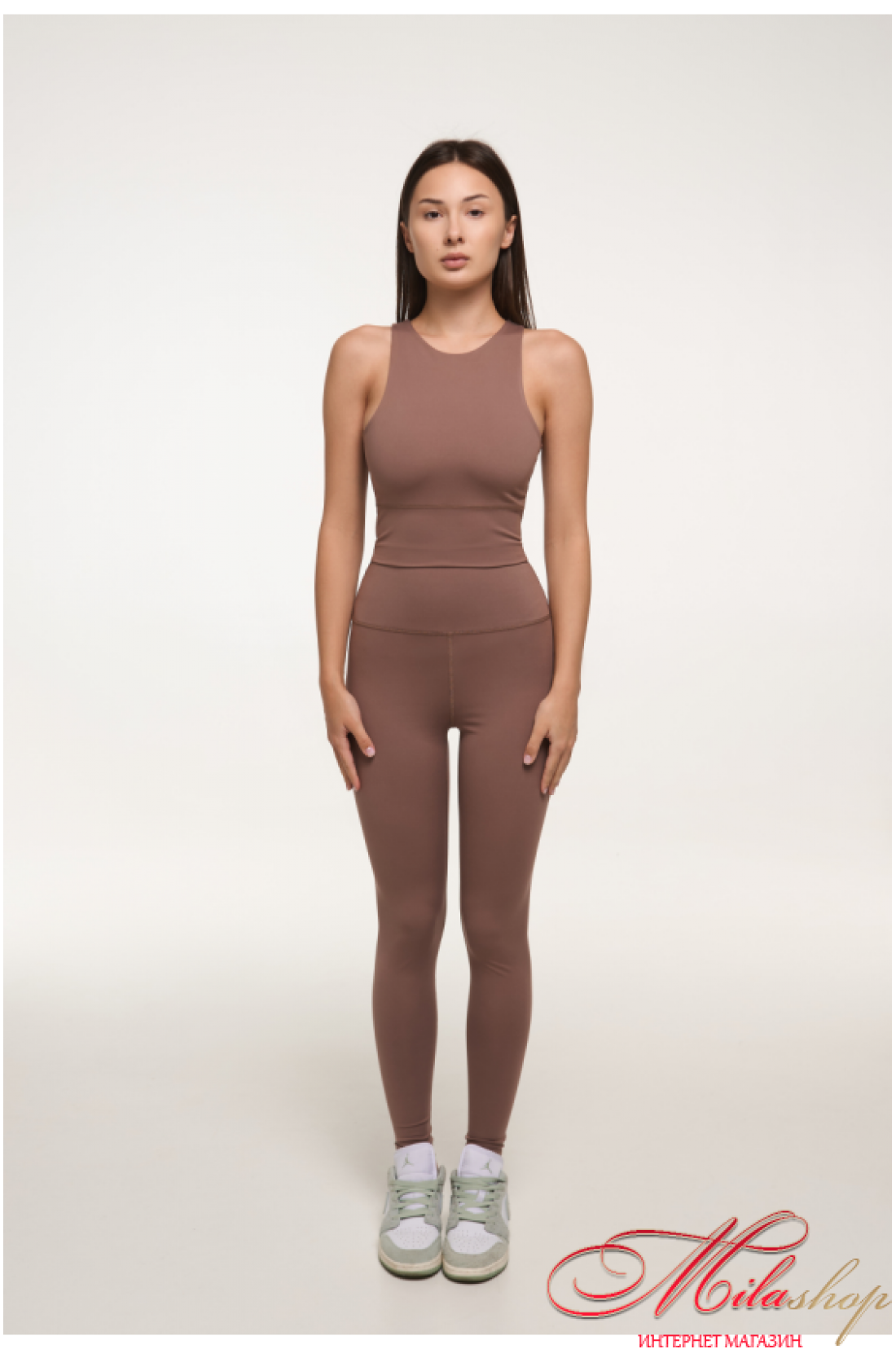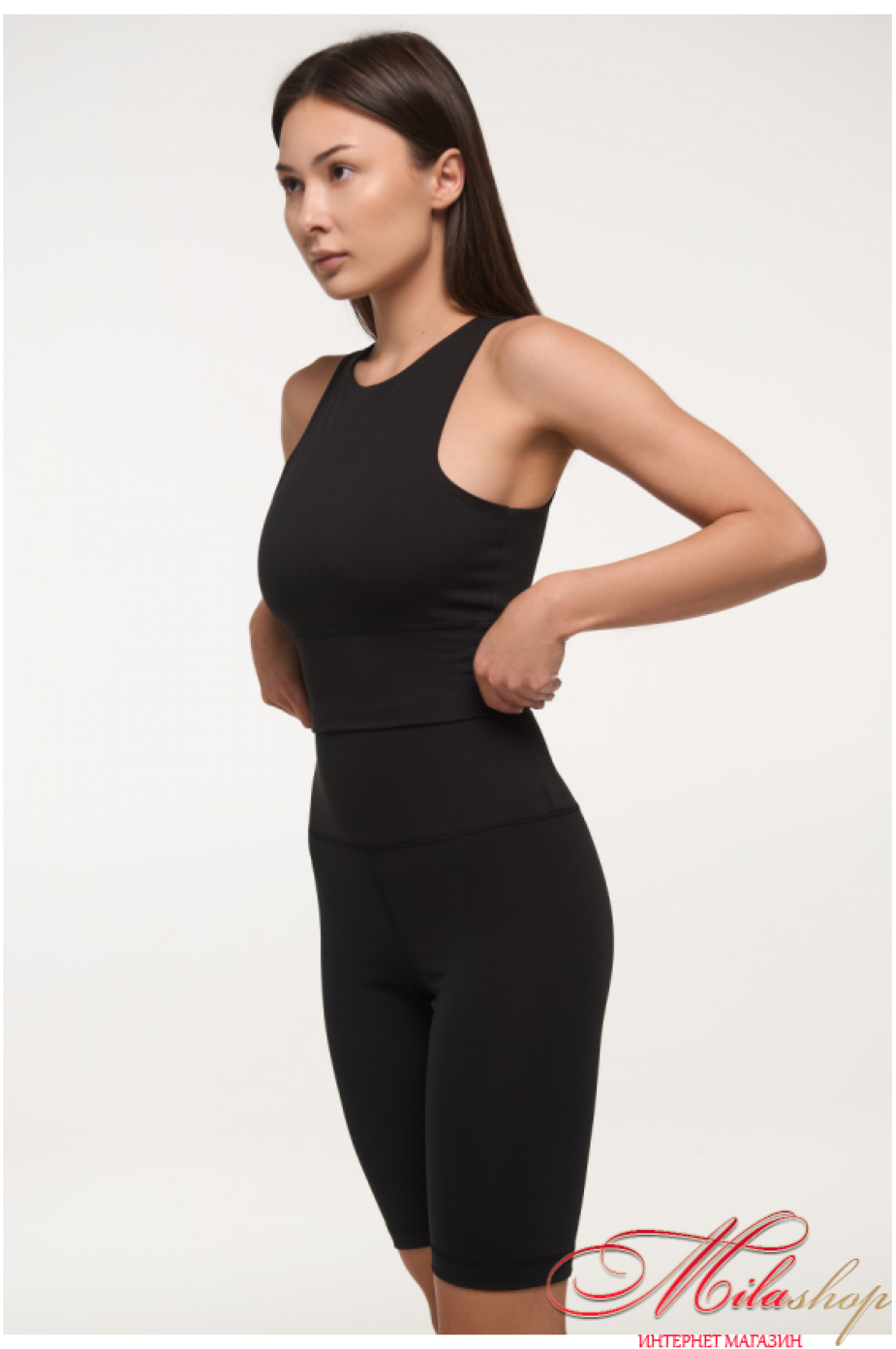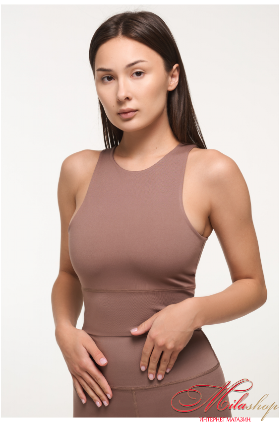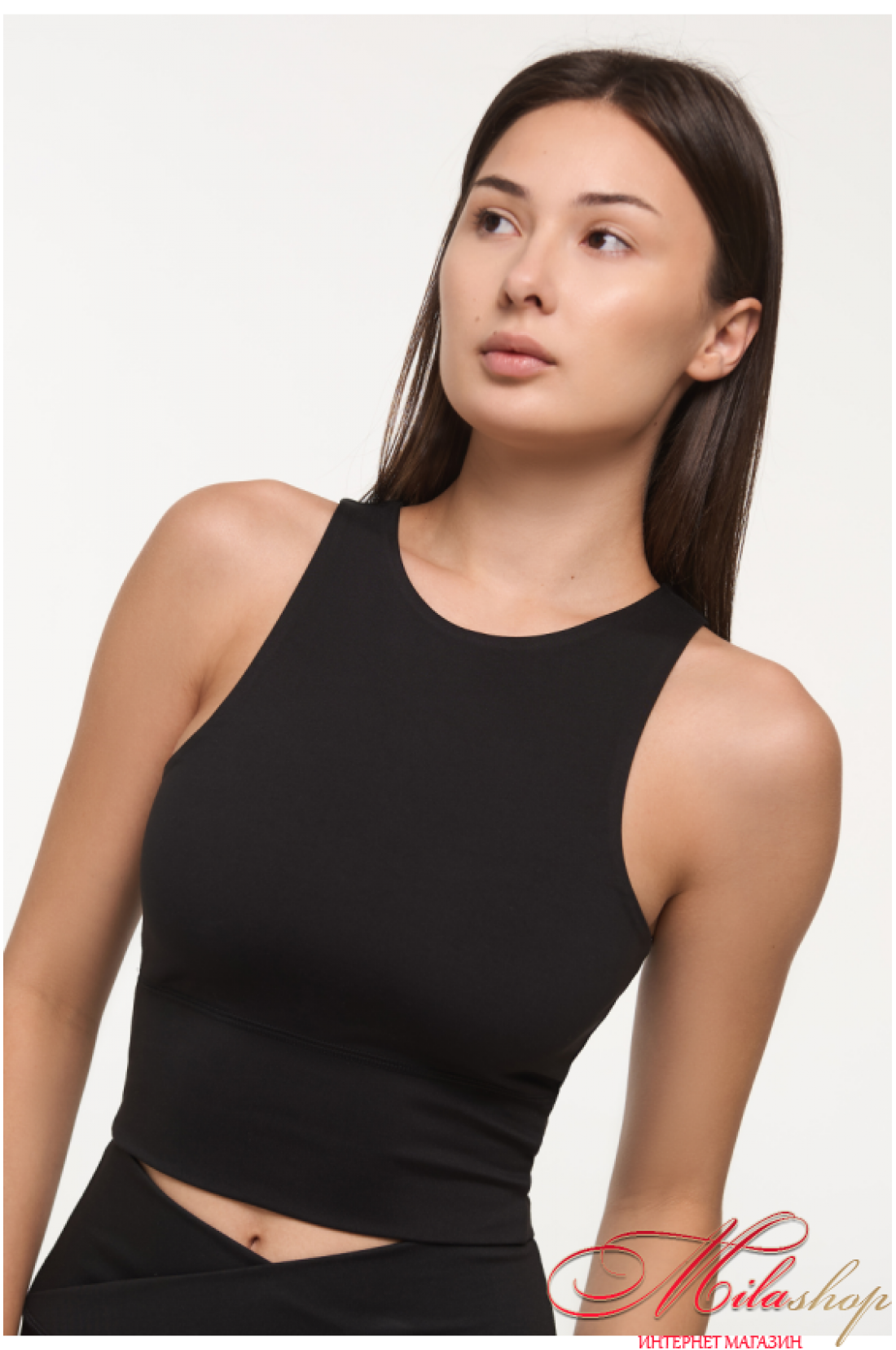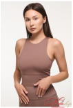 Топ из спортивной микрофибры с высокой посадкой воротничка. Обновленная модель. Из плотного материала. Имеет двойную конструкцию ткани, чтобы иметь комфортное и уверенное движение. Высокая посадка выреза воротничка. Плоские швы. Внутренние швы все скрыты и гладкие.