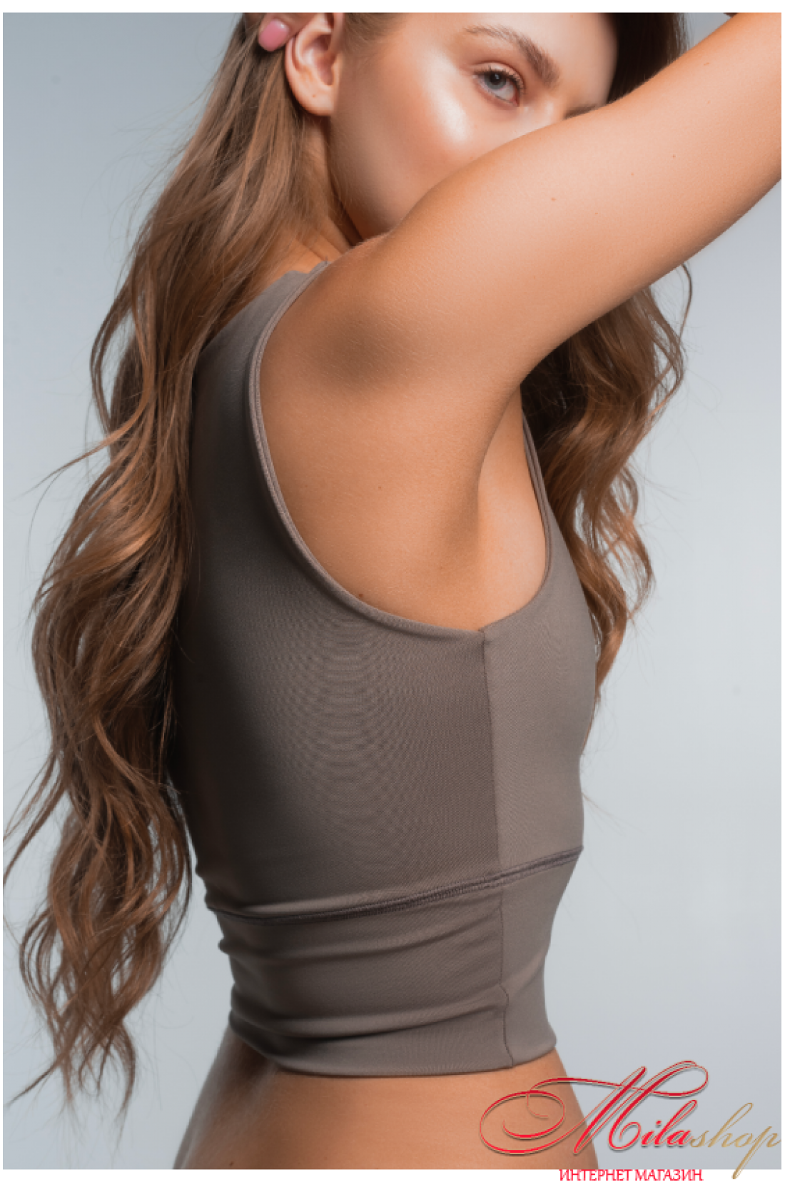 Топ из спортивной микрофибры с широкой бретелью и открытым вырезом. Из плотного материала. Имеет двойную конструкцию ткани, чтобы иметь комфортное и уверенное движение. Открытая посадка выреза воротничка. Плоские швы. Внутренние швы все скрыты и гладкие. Спортивная коллекция обладает универсальными моделями, которые могут быть стильным дополнением повседневного лука, комфортным комплектом для спорта и удобным элементом домашней одежды.