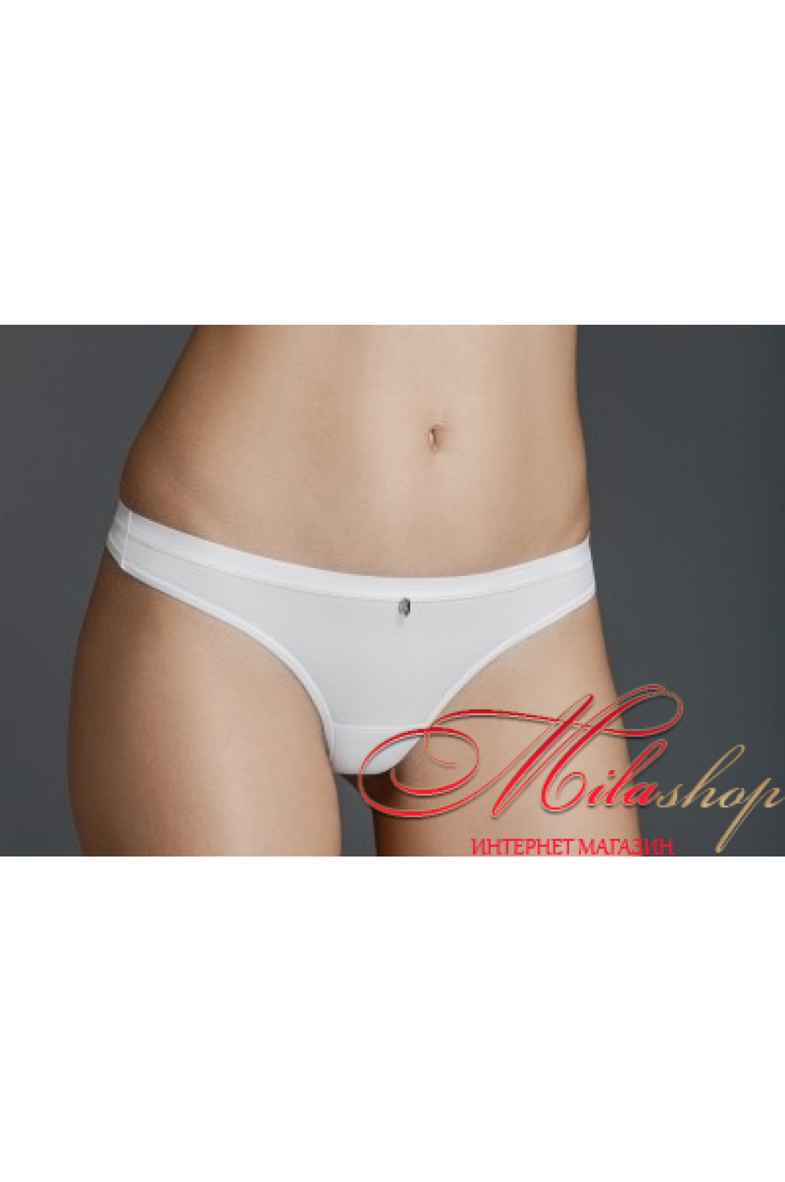 Трусики "бразилиана из эластичного трикотажного полотна. Средняя линия талии. Декор - подвеска. Нижние срезы обработаны плоским швом.