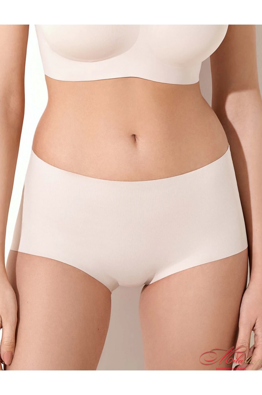 Комфортные бесшовные трусы с высокой линией талии из приятного гладкого эластичного "clean cut" материала. Плоский склеенный боковой шов. Вклеенная хлопковая ластовица.