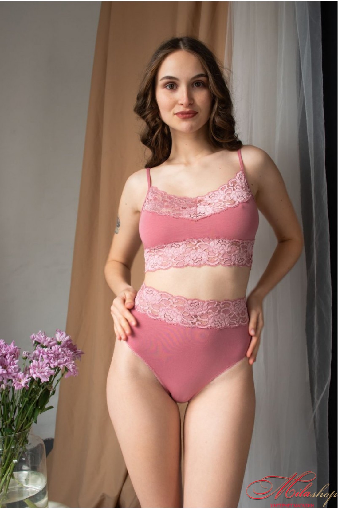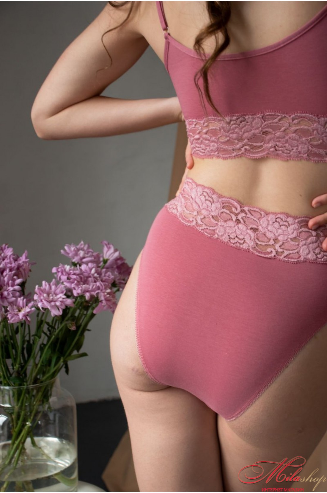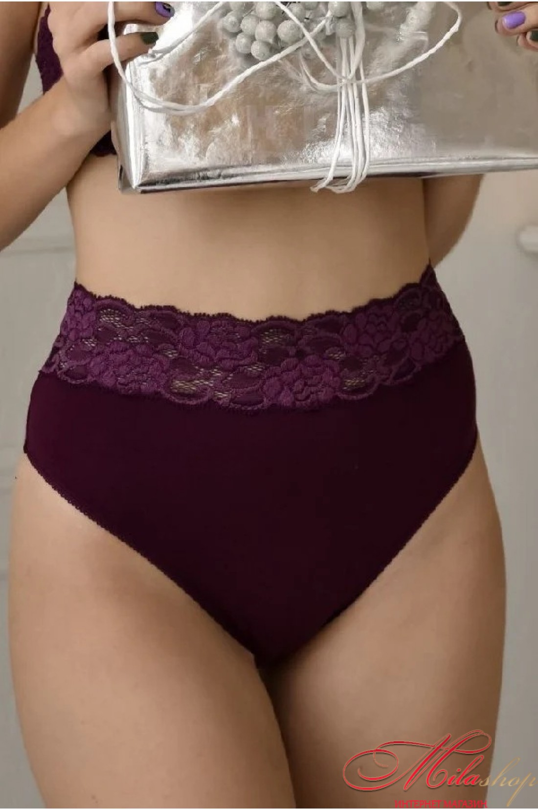 Высокие трусики слипы выполнены из хлопка с кружевом. Идеальная посадка трусиков. 92% бавовна, 8% еластан.