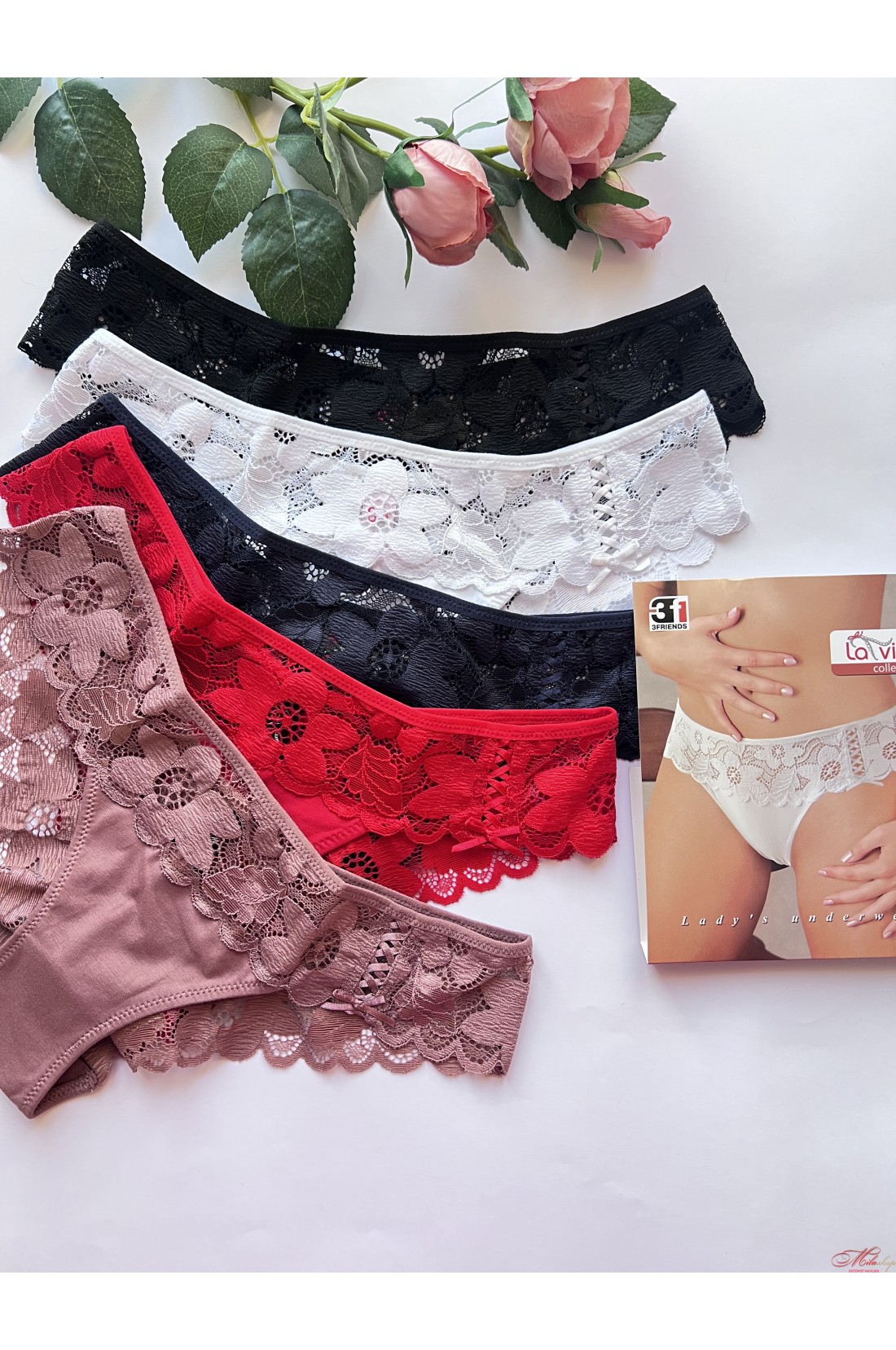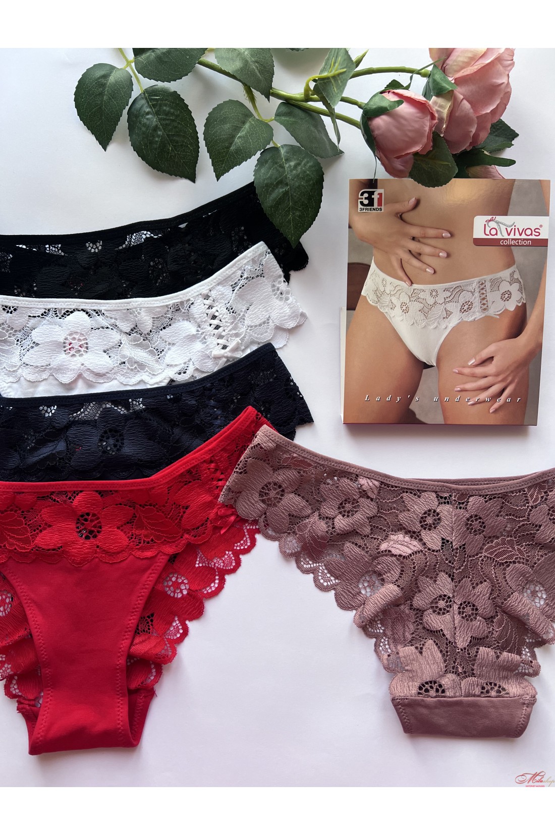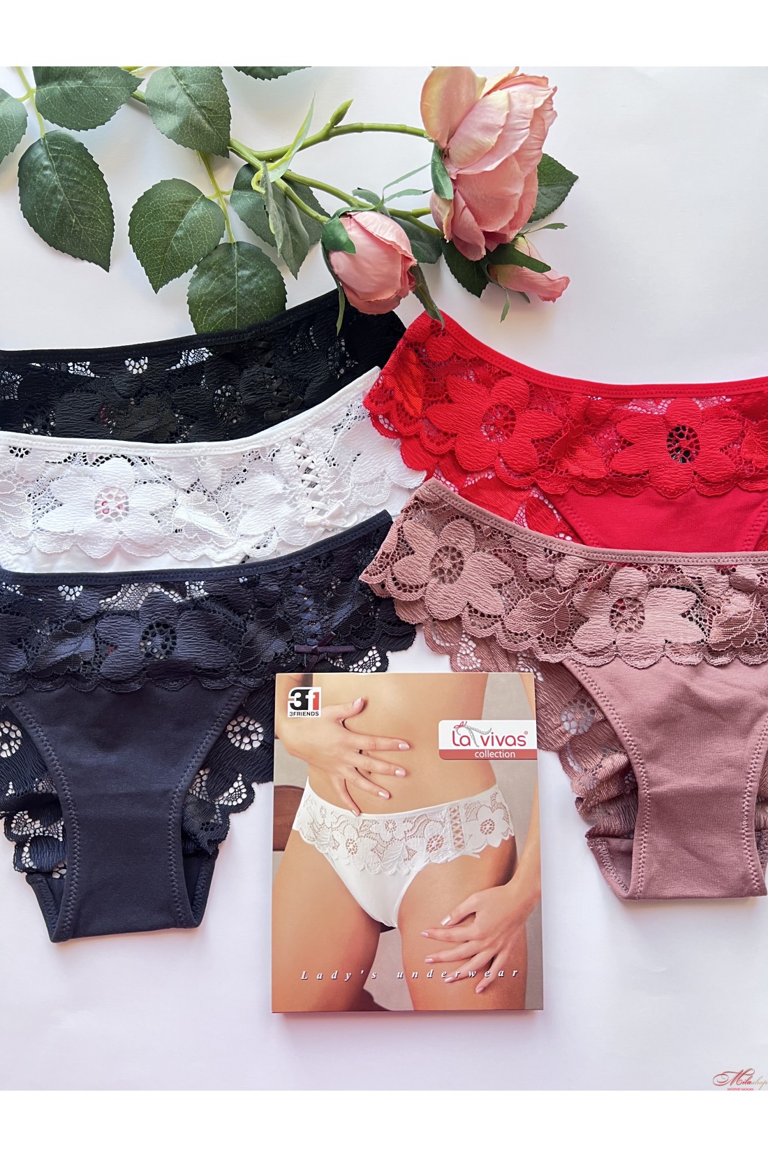 Трусики слипы из хлопка и кружева La Vivas 60378