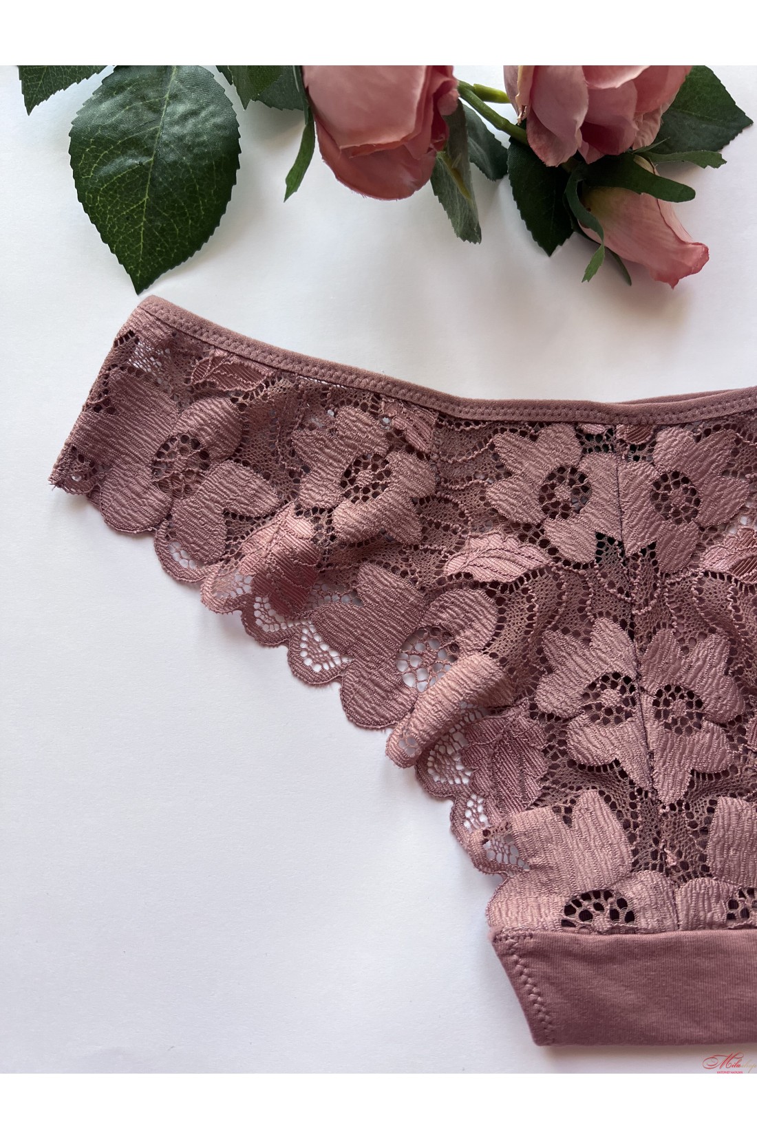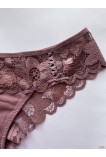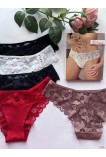 Кружевные трусики со средней линией талии. Передняя часть выполнена из нежного хлопкового полотна с широким кружевным поясом. Задняя часть трусиков выполнена из кружевного полотна. На кружеве ярко выражен цветочный узор. Размерная сетка: S - бедра 88-92см, М - бедра 92-96см, L - бедра 96-100см, XL - бедра 100-104см, 2XL - бедра 104-108см, 3XL - бедра 108-112см.