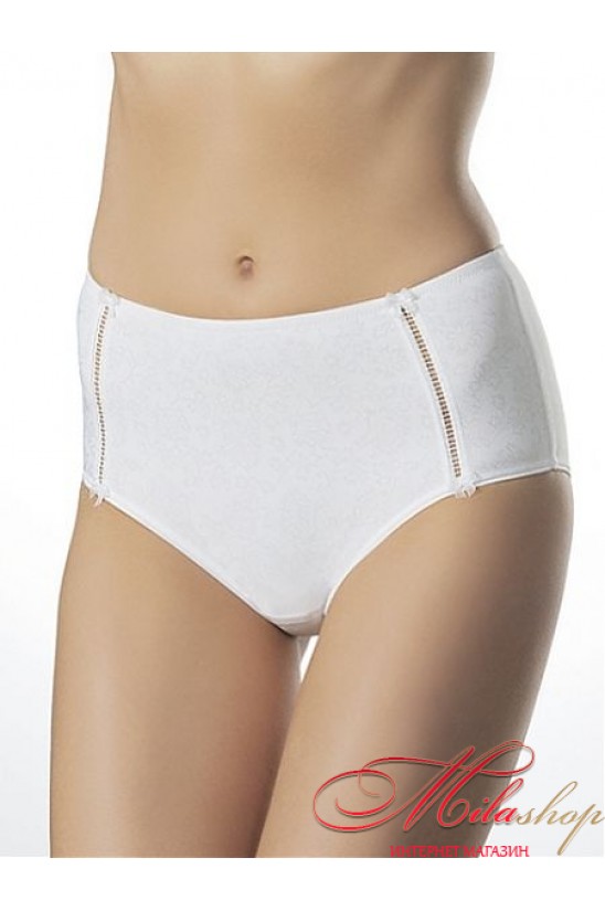 Трусы «слип» из эластичного трикотажного жаккардового полотна. Высокая линия талии. Отделка – тесьма с эффектом «мережки», бантики.