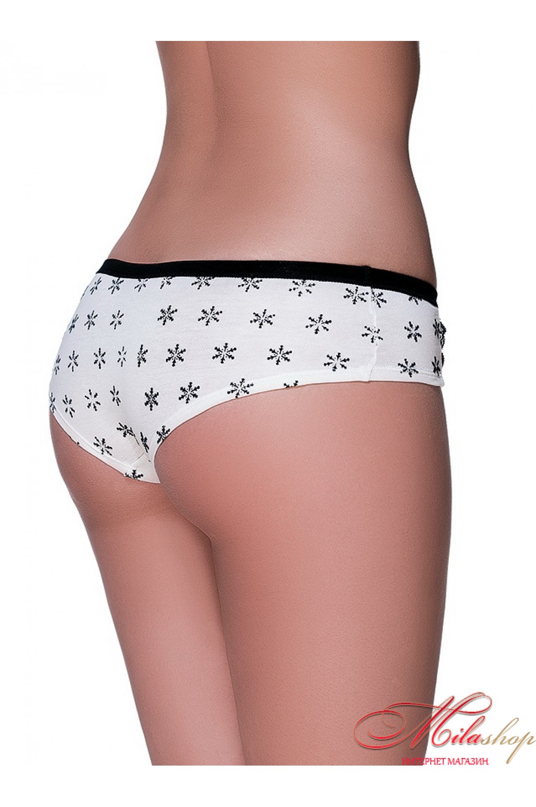 Женские трусики-шортики из хлопка, с низкой линией талии. Трусики украшены зимним узором в виде снежинок. зор выполнен из флока. Очень комфортная модель.