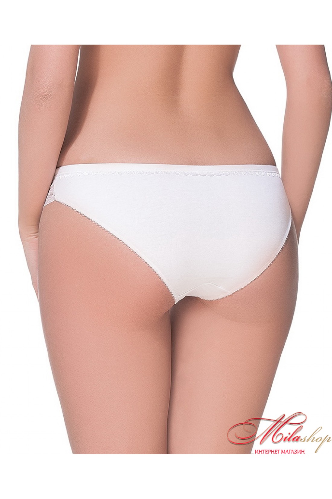 Женские трусики-слипы, выполнены из высококачественного хлопкового полотна, низкая линия талии, украшены кружевными вставками.