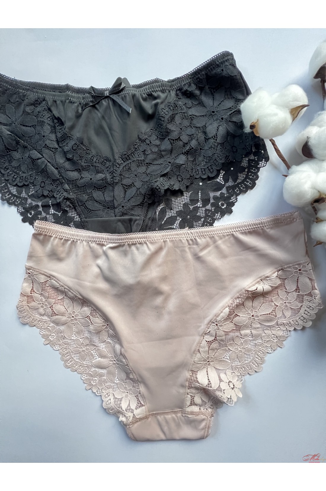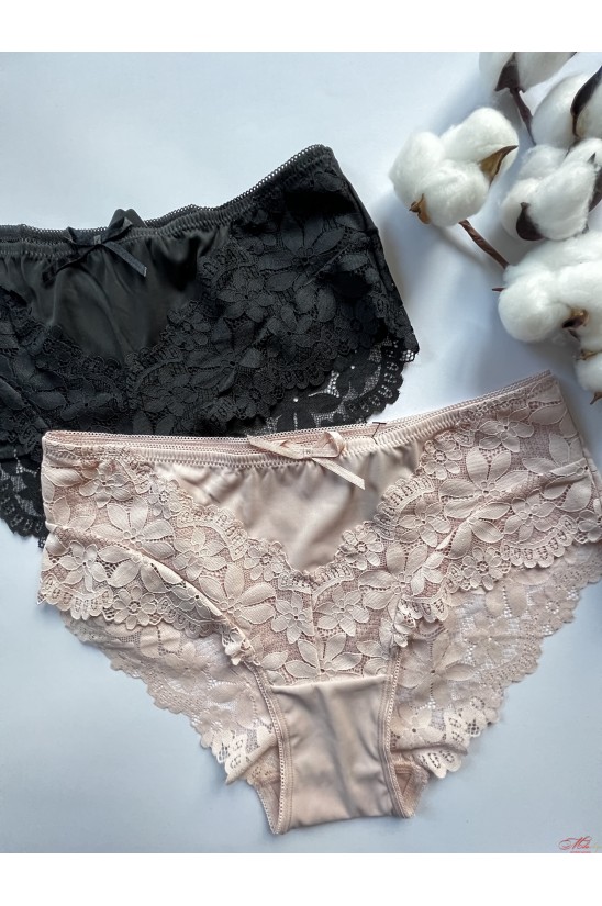Женские трусики слипы из микрофибры и кружева. Хлопковая ластовица.
