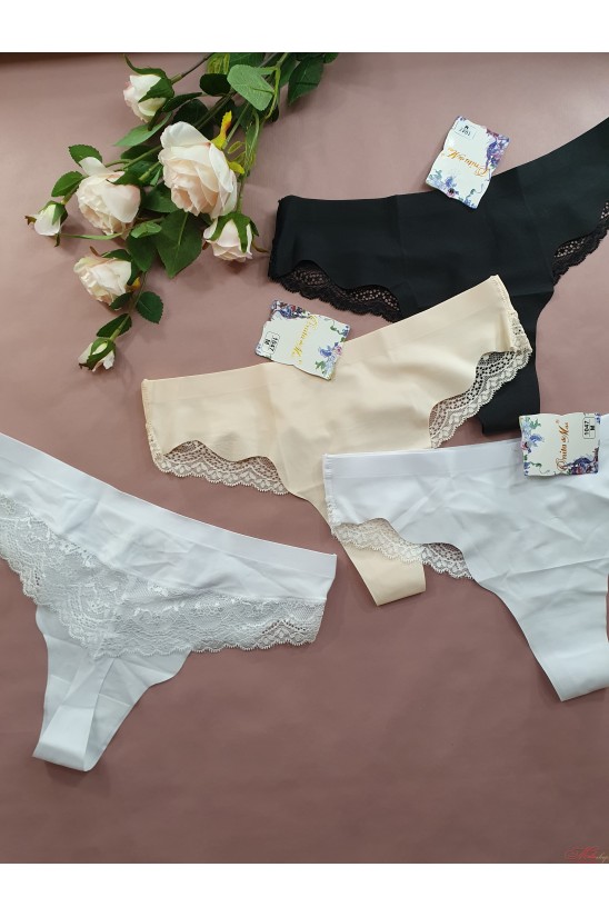 Бесшовные трусики стринги из микрофибры с кружевом Onita de Mas 1047
