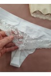 Бесшовные стринги с кружевной попой. Средняя линия талии. Незаметны под одеждой. М белые, Хл бежевый