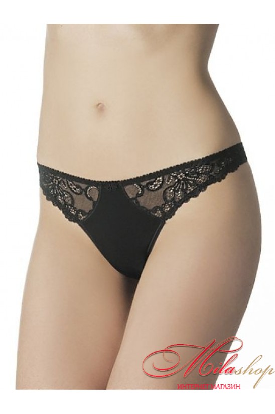 Трусы-стринг из эластичного трикотажного полотна и эластичного кружева. Низкая линия талии. Отделка – бантик макраме. Такие трусики-стринги идеально подходят для повседневного использования.