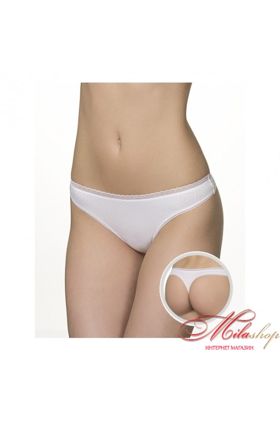 Трусы "стринг" из эластичного трикотажного хлопкового жаккардового полотна. Низкая линия талии. Отделка-ажурная вязаная тесьма по верхнему срезу.