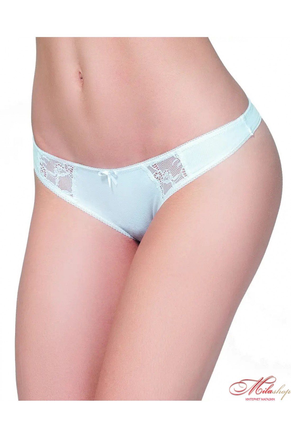 Женские трусики-стринги. Выполнены из хлопка. Спереди украшены вставкой из кружева.