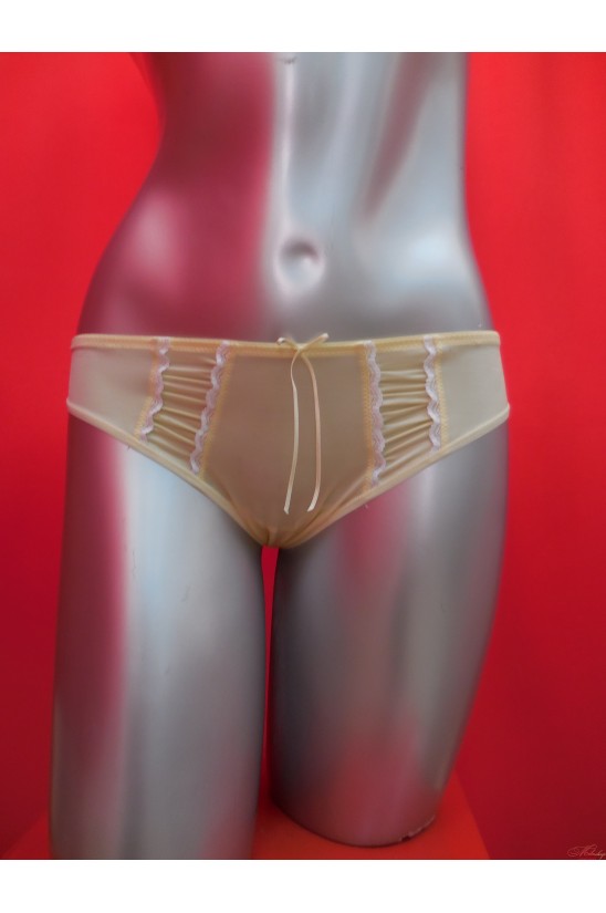 Трусики стринги из эластичного полотна с блеском. Отделка - узкое кружево и бантик на передней детали.