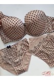 На кісточках, стан - щільна еластична тканина з візерунком, усередині чашок бавовняне дубльоване полотно, застібка на два гачки в трьох положеннях.