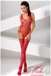Бодістокінг на тонких бретелях, що з'єднує в собі боді з пажами та панчохи. Виконаний з еластичного сітчастого матеріалу з рослинними мотивами, поперечний візерунок на талії та по краю панчіх. Без вирізу в зоні інтимної.