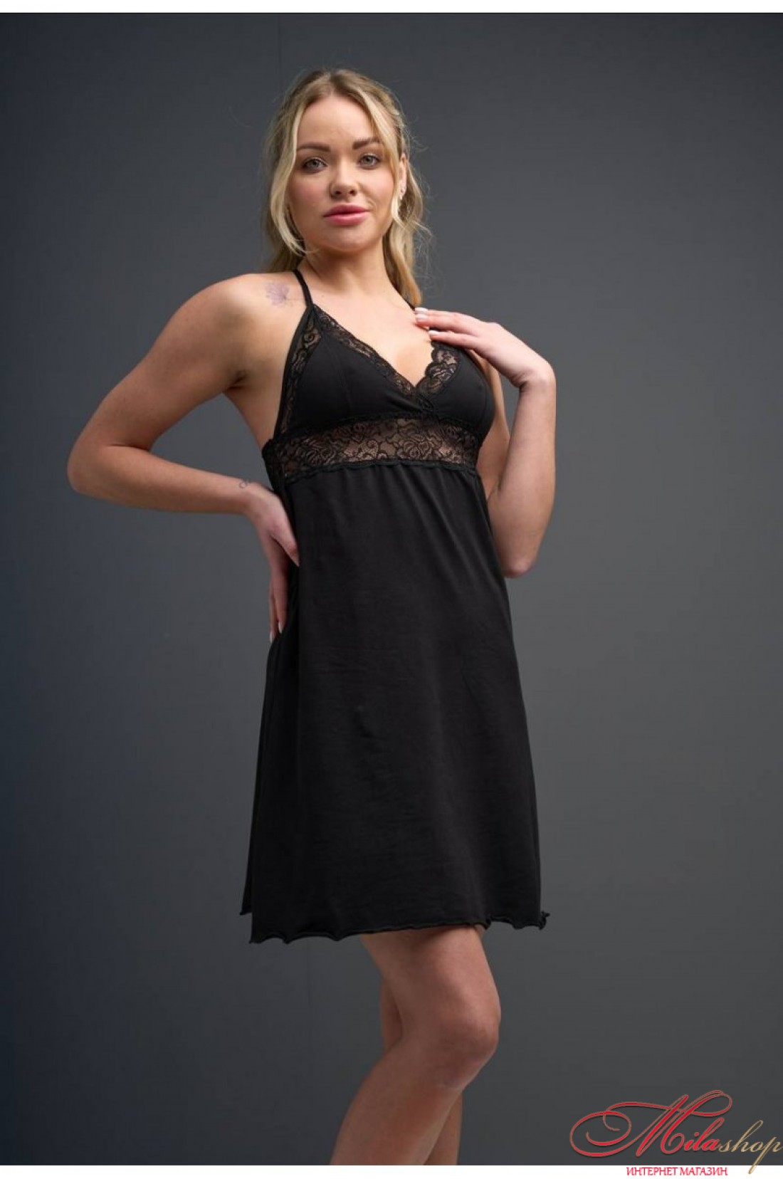 - Нічна сорочка з бавовни, красиво виконана спинка в поєднанні з мереживом. Бавовна добре пропускає повітря та вбирає вологу, не подразнює чутливу шкіру.