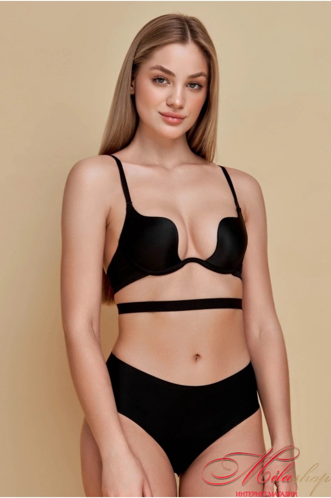 Гладкий безшовні бюстгальтер з формовані поролонові чашки з невеликим push-up. За допомогою спеціальної технології лазерної спайки країв бюстгальтер непомітний під одягом і не залишає слідів на тілі. Бюстгальтер добре фіксує груди знизу, що дозволяє носити його без бретелів.