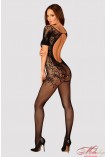 Сітчастий бодістокінг з квітковим малюнком, виконаний з м’якої стрейчевої тканини, яка красиво облягає тіло та добре тягнеться в різні боки. Великі квіти прикрашають короткі рукави, груди, боки, живіт і стегна, але абсолютно не приховують, а лише підкреслюють спокусливі лінії тіла. Великий виріз на спині оголює ніжне тіло, а родзинкою цього зухвалого вбрання є відкрита промежина. Імітація шнурівки спереду сексуально відкриває півкулі грудей і пупок. Довгі панчохи бодістокінга виконані із сітчастого матеріалу.
