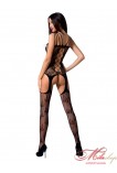 Елегантний бодістокінг на тонких бретелях, що імітує корсет з пажами та панчохами. Виконаний із еластичного сітчастого матеріалу з ажурним візерунком. Декорований сіткою з великими осередками та шнурівкою.